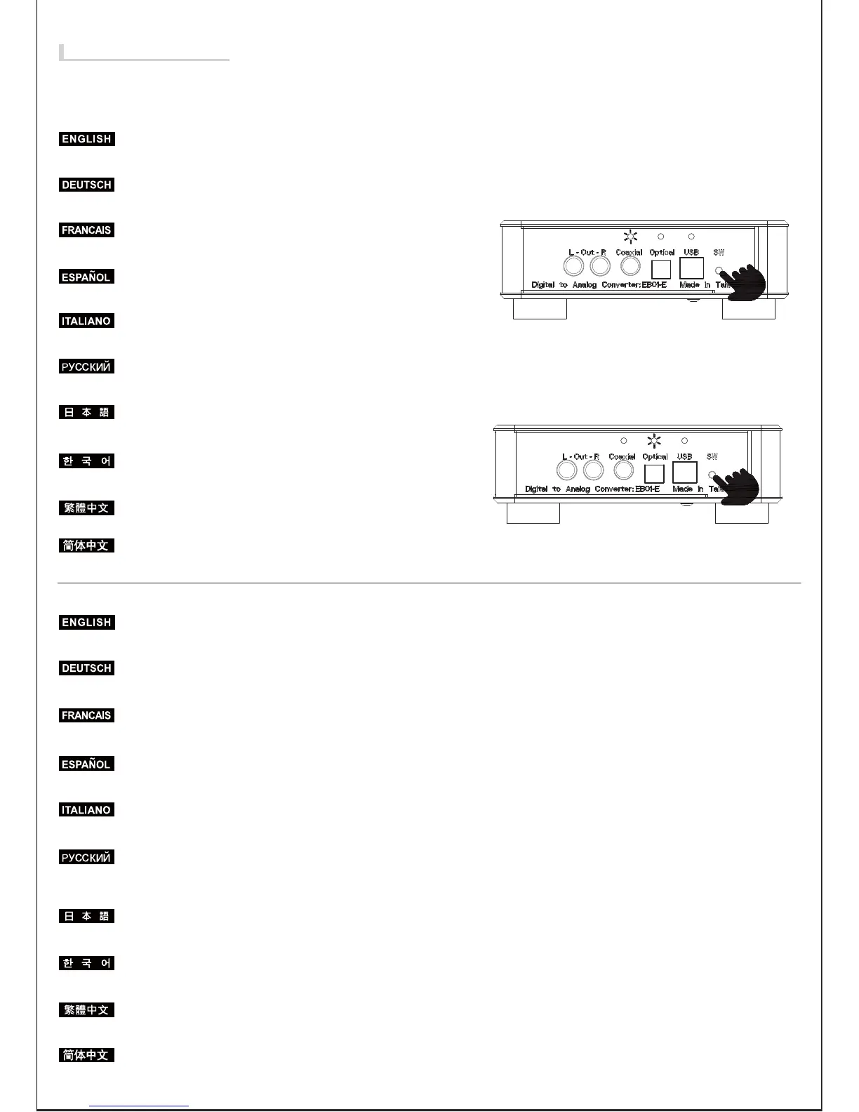 Premere il tasto sul retro di EB01-E per selezionare l'ingresso ottico o coassiale