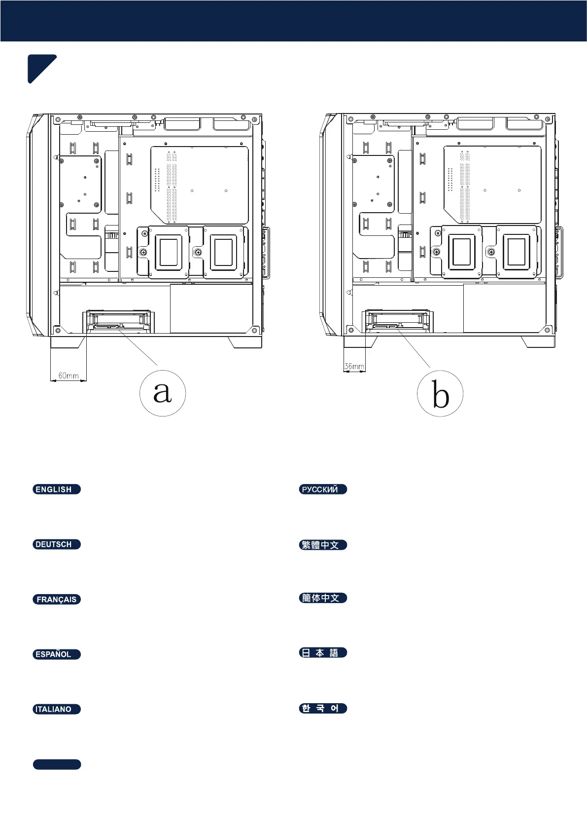 There are two positions to install the drive cage Есть два места для установки отсека для жёсткого диска