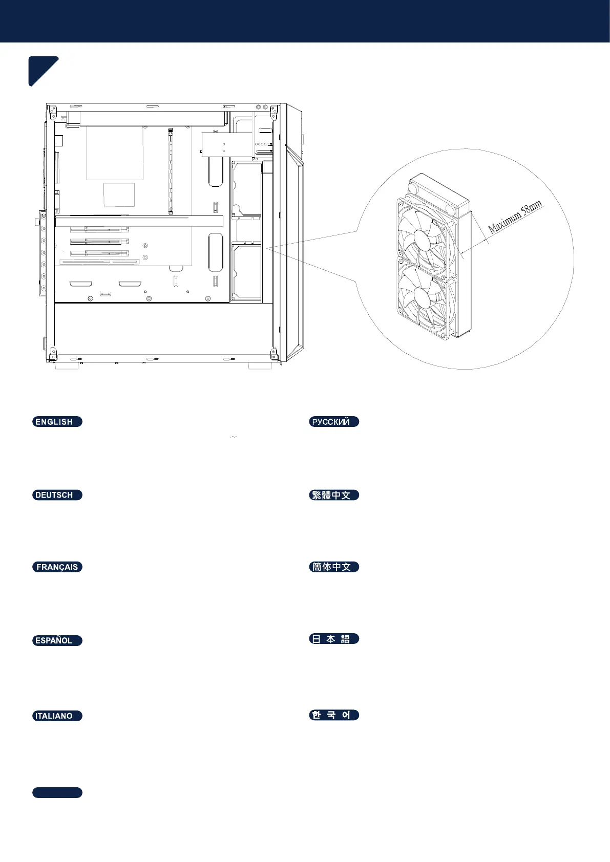 58mm(25mm 두께 팬, 전면 섀시 내부에 설치됨)