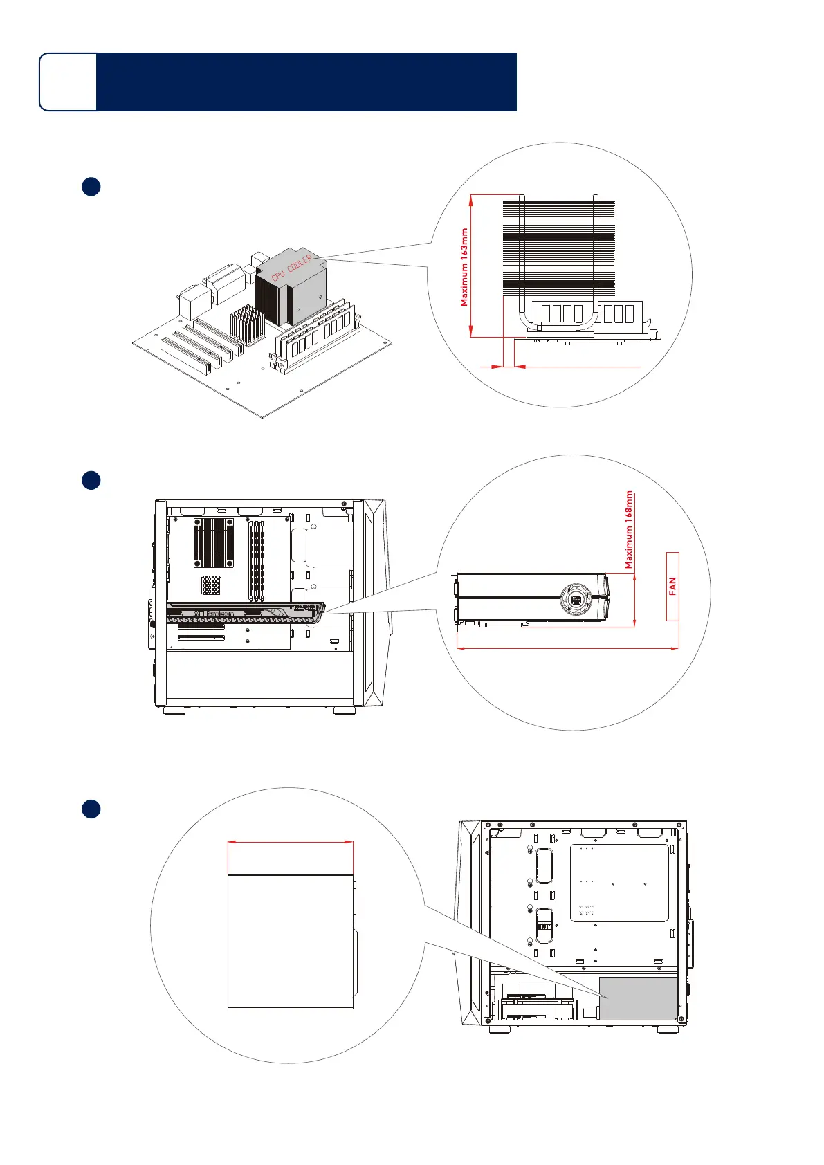 SilverStone FARA V1 - Component Restrictions; CPU Cooler Height & Protrusion Limits; Graphics Card Length & Width Limits; PSU Depth Limit