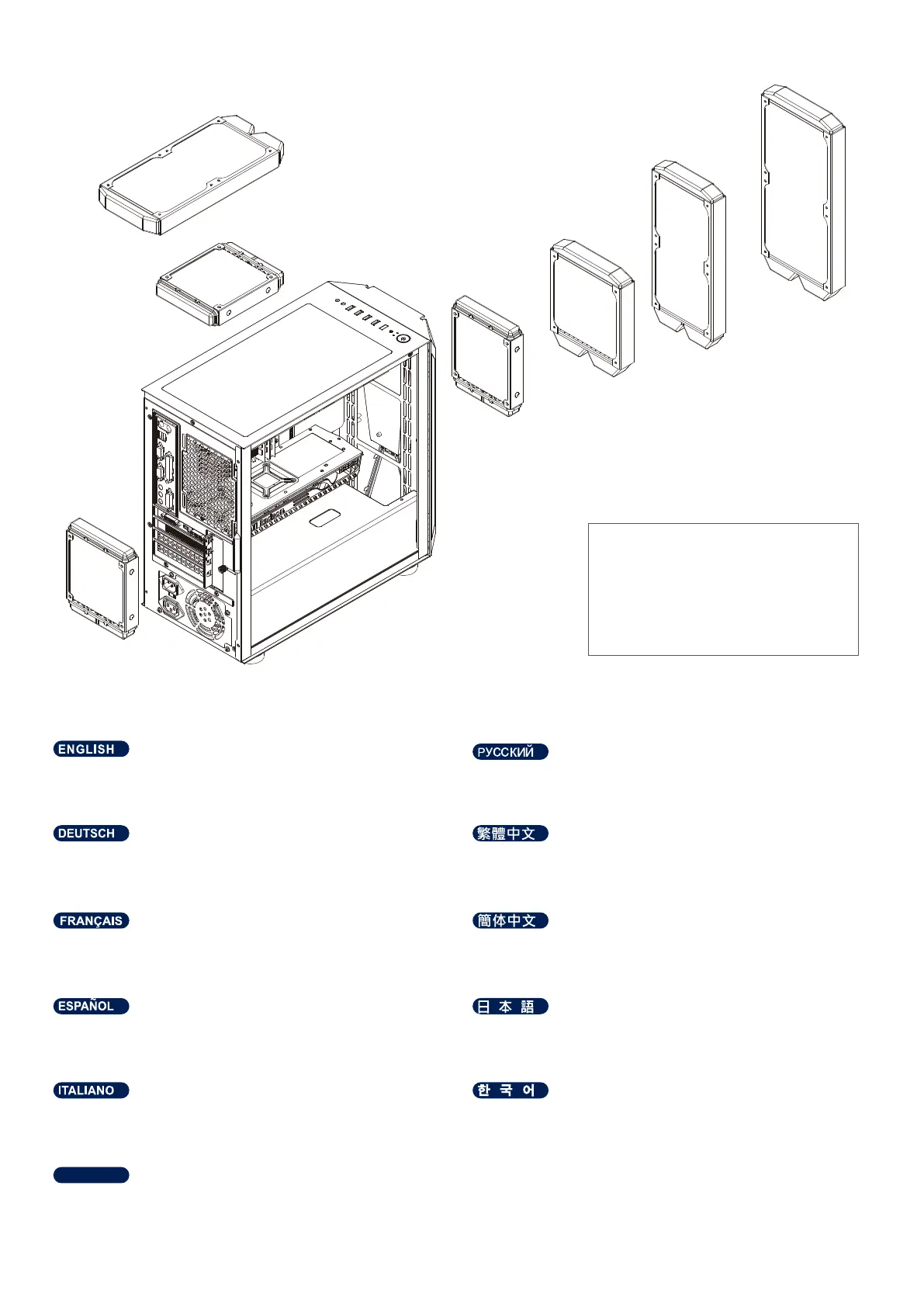 安裝前風扇或水排時,請先移除前面板