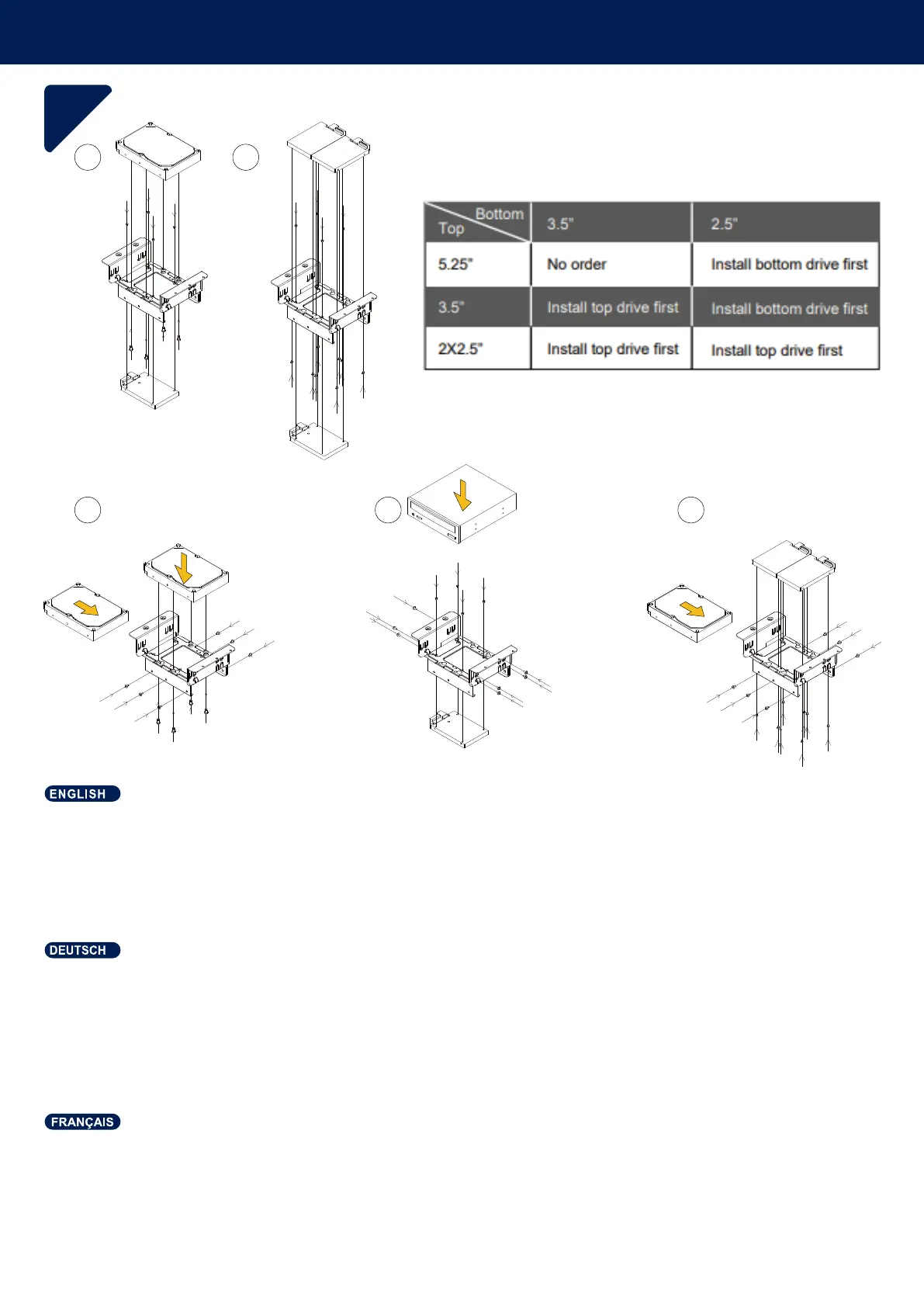 installiertem 3,5-Zoll-Laufwerk montiert wird. Es gibt jedoch empfohlene Abfolgen, wenn kleinere Laufwerke installiert werden; bitte