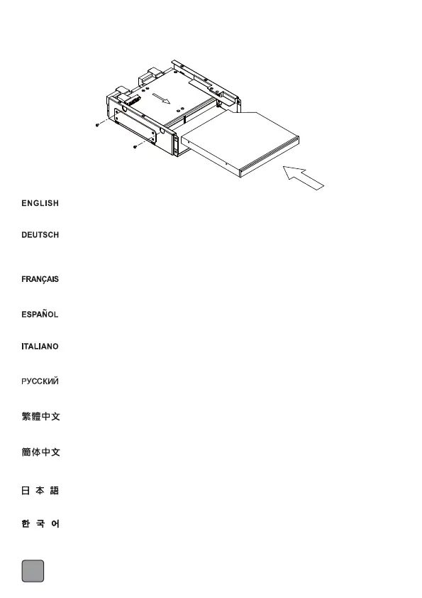 スロットローディング光学ドライブを差し入れ、付属のネジで固定します。