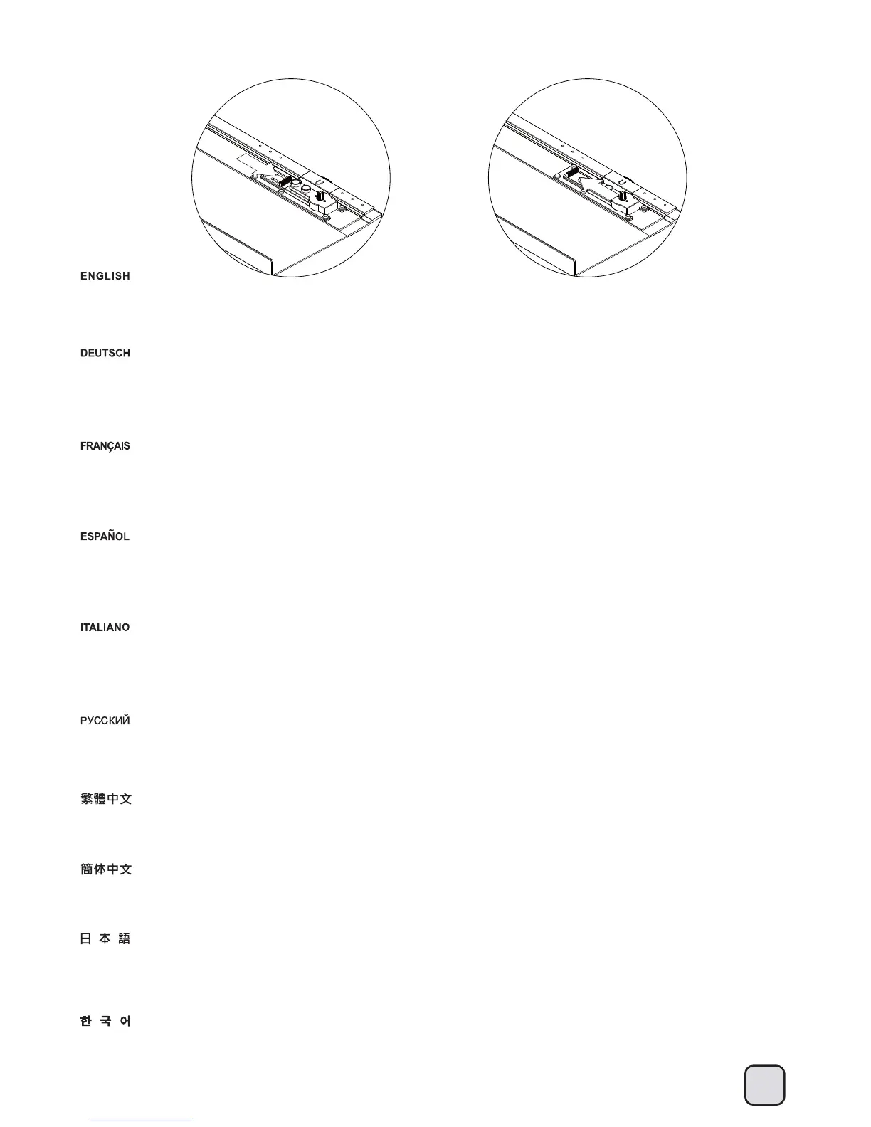 Die Blende der Frontklappe enthält eine Sperre für die Ein-/Austaste. Bitte beachten Sie das nachstehende Bild; durch Drücken der Sperre der
