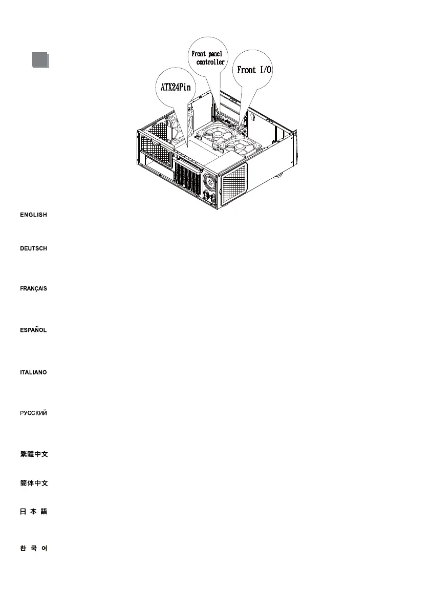 cables, power supply 24pin cable, CPU ATX 4pin/EPS12V 8pin, front panel connectors, and front I/O connectors.