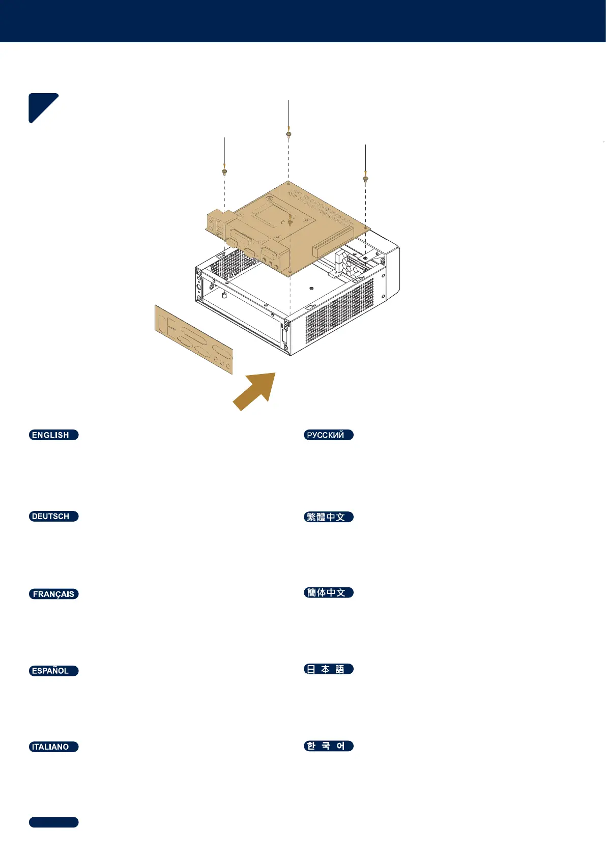 Install motherboards (I/O panel, secure screws) Установите материнскую плату (панель I/O, крепежные