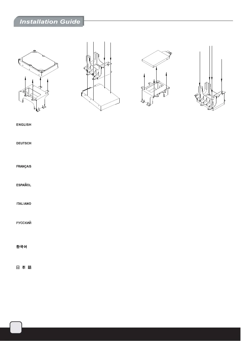 Installare ed assicurare con le viti in dotazione gli hard disk da 3,5” o 2,5” nel supporto specifico. Il supporto è stato progettato per ridurre