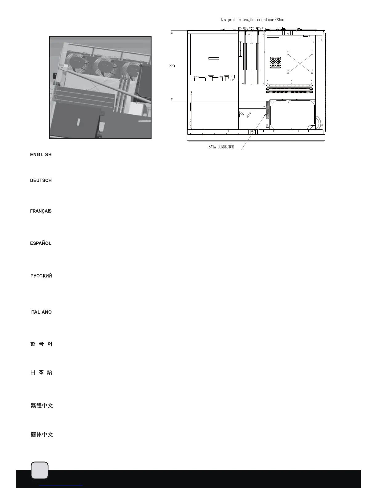 With 3.5” SATA hard drive installed on the right front, the ML04 can accommodate low profile expansion cards up to 8.78” long.