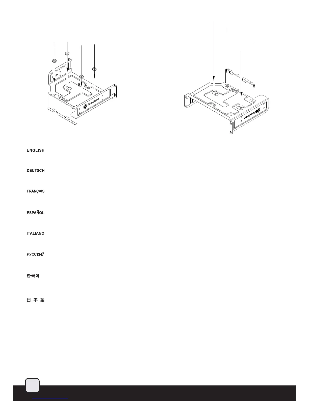 mounts then secure the hard drive with four hard drive screws from the bottom.