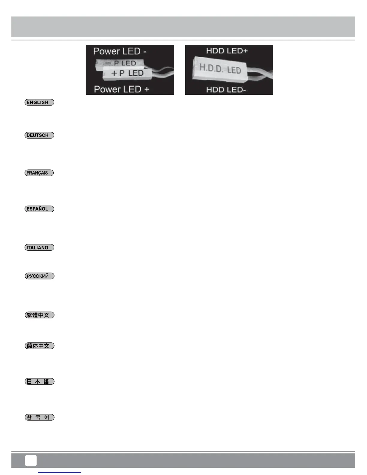 motherboard so please make sure they are connected in the right polarity by referring to your motherboard manual.