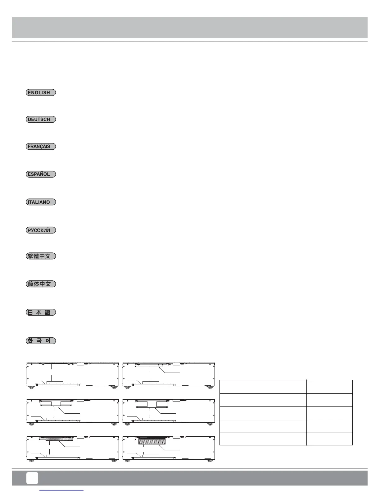 Por favor consulte la tabla siguiente.