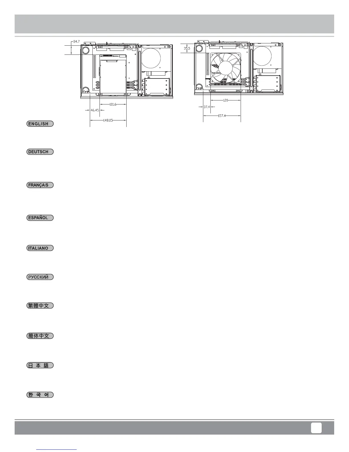 120mm x 25mm 팬 및 3.5” 드라이브의 두께 때문에, 그림에서는 참조를 위해 마더보드 상의 상대적 위치를 표시합니다. USB 3.0