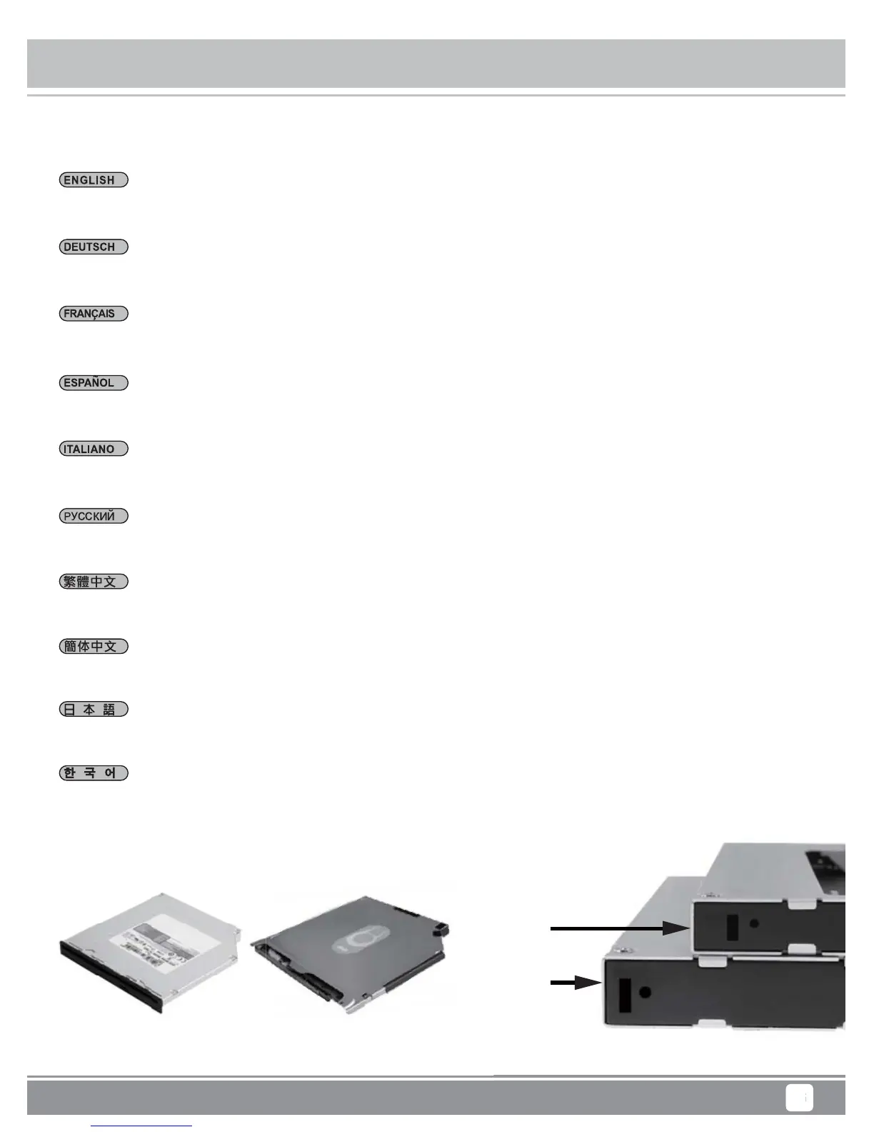 optischen Laufwerken können nur solche mit Schublade verwendet werden; außerdem muss zur Installation die Frontblende