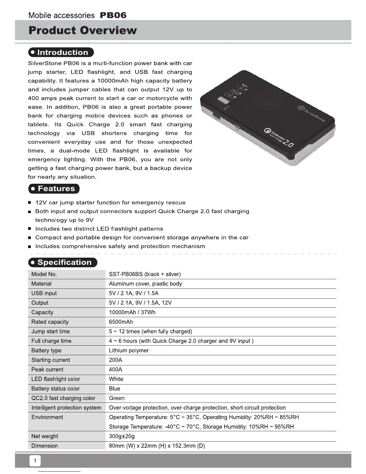 SilverStone PB06 - Introduction and Features; Technical Specification