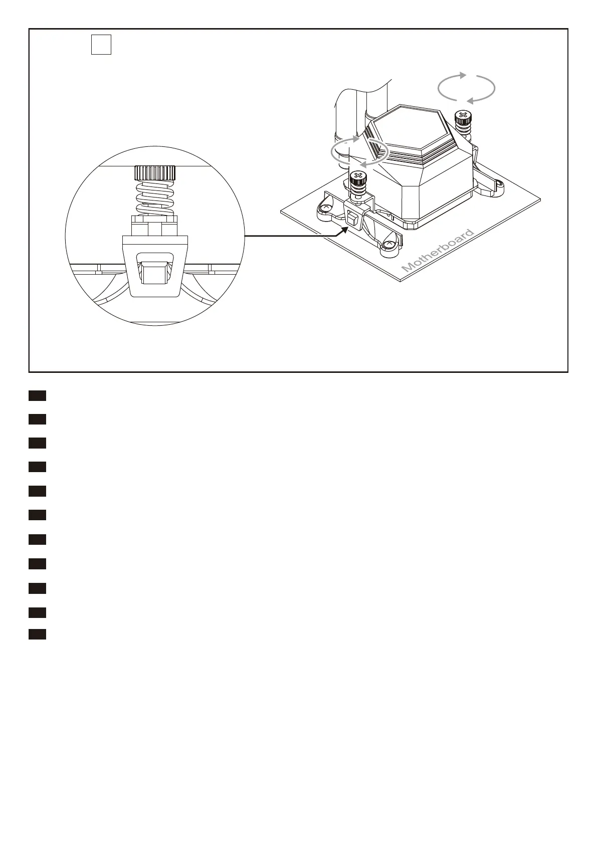 Hook the clip onto motherboard’s cooler retention bracket