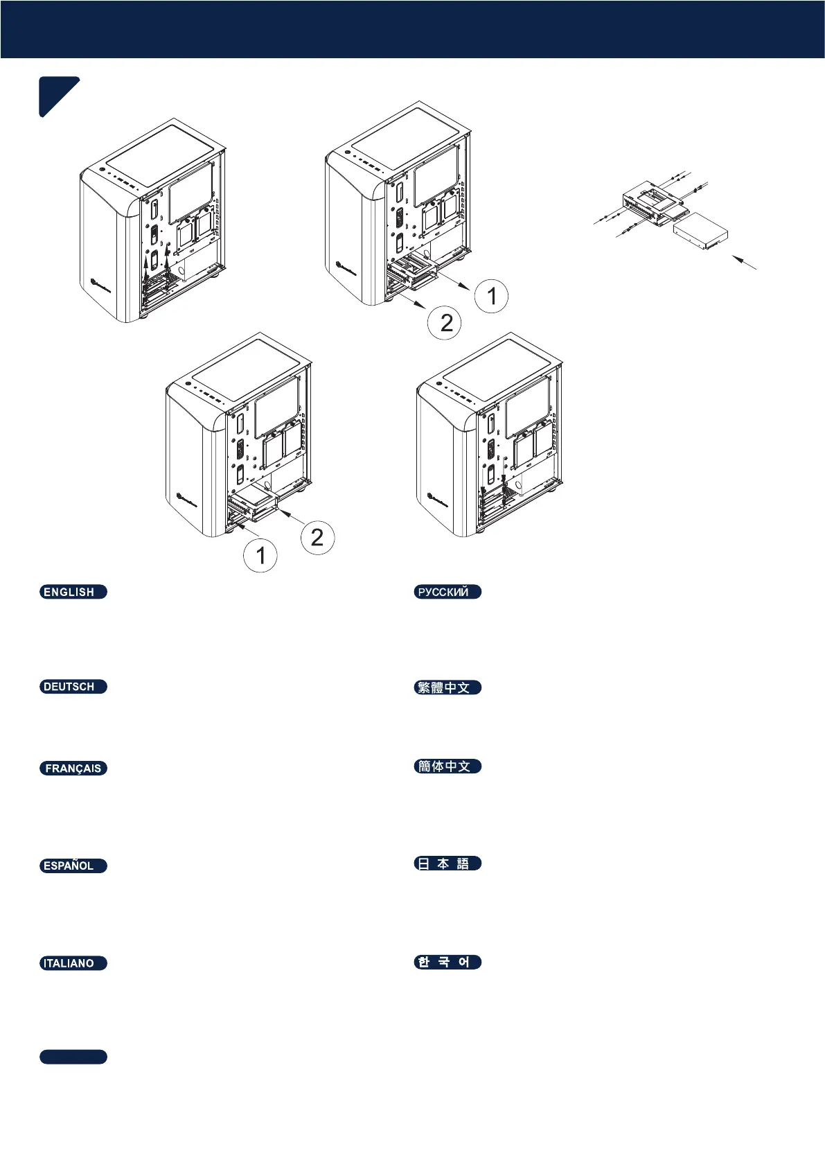 드라이브 트레이에 3.5” 장치와 2.5” 장치를 설치하고, 하단