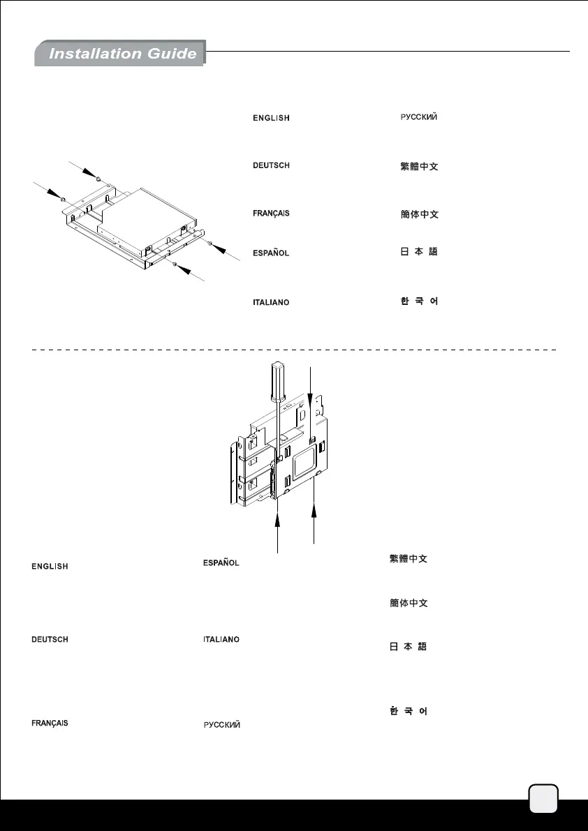將薄型光碟機裝入光碟機架並以內附螺絲鎖固。