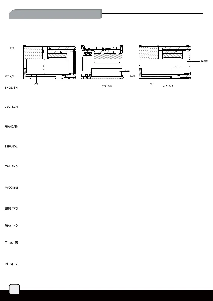 Limite anteriore: La ventola d’aspirazione anteriore 120 mm di SG05-Lite può essere limite anteriore del dispersore di calore CPU, dopo aver rimosso