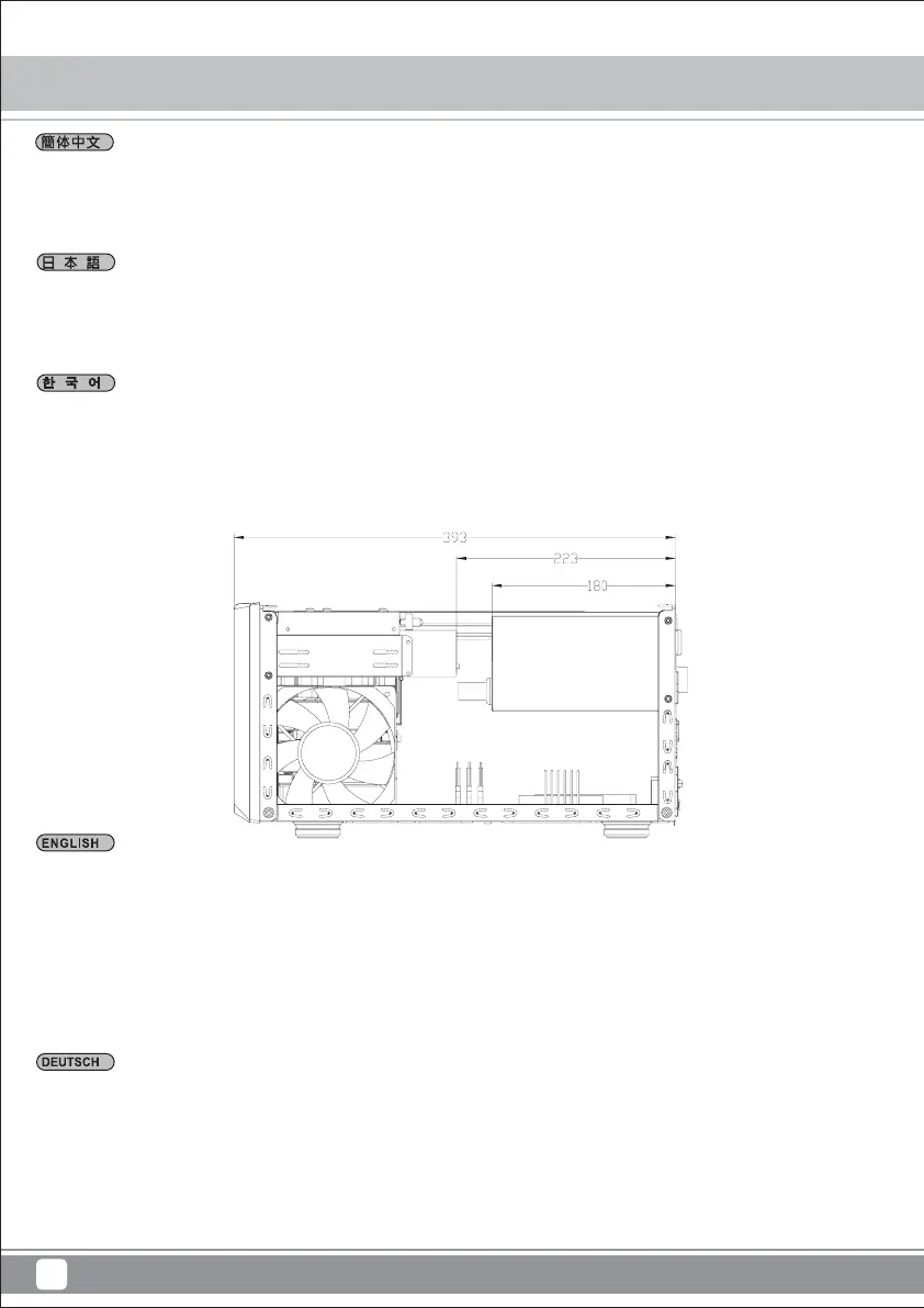 einer erlaubten Gesamtlänge von 393 mm muss also auch der Platz zur Verkabelung berücksichtigt werden. Wir empfehlen eine maximale Netztei