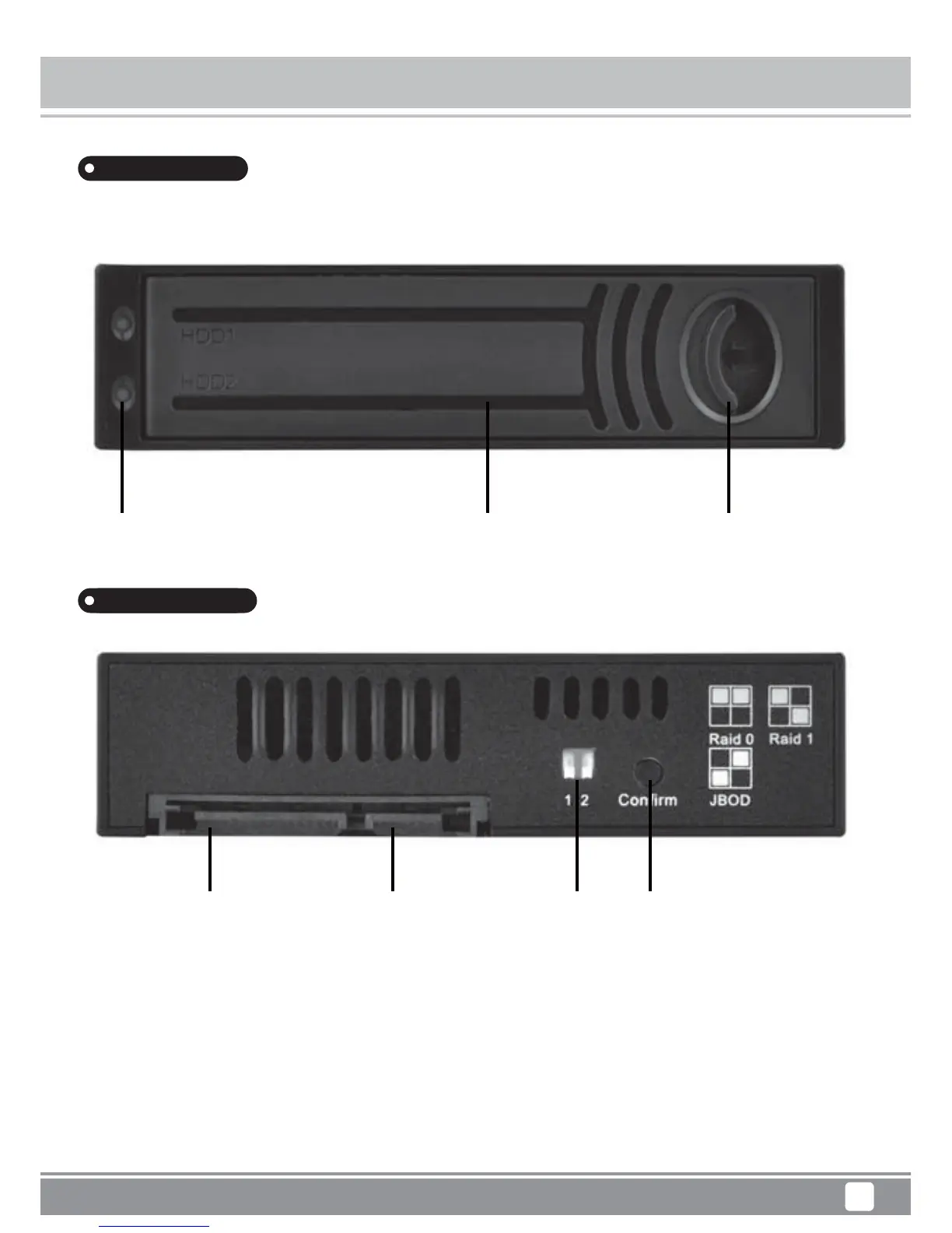 Confirm button: After selecting RAID mode, please press “Confirm button” for 5