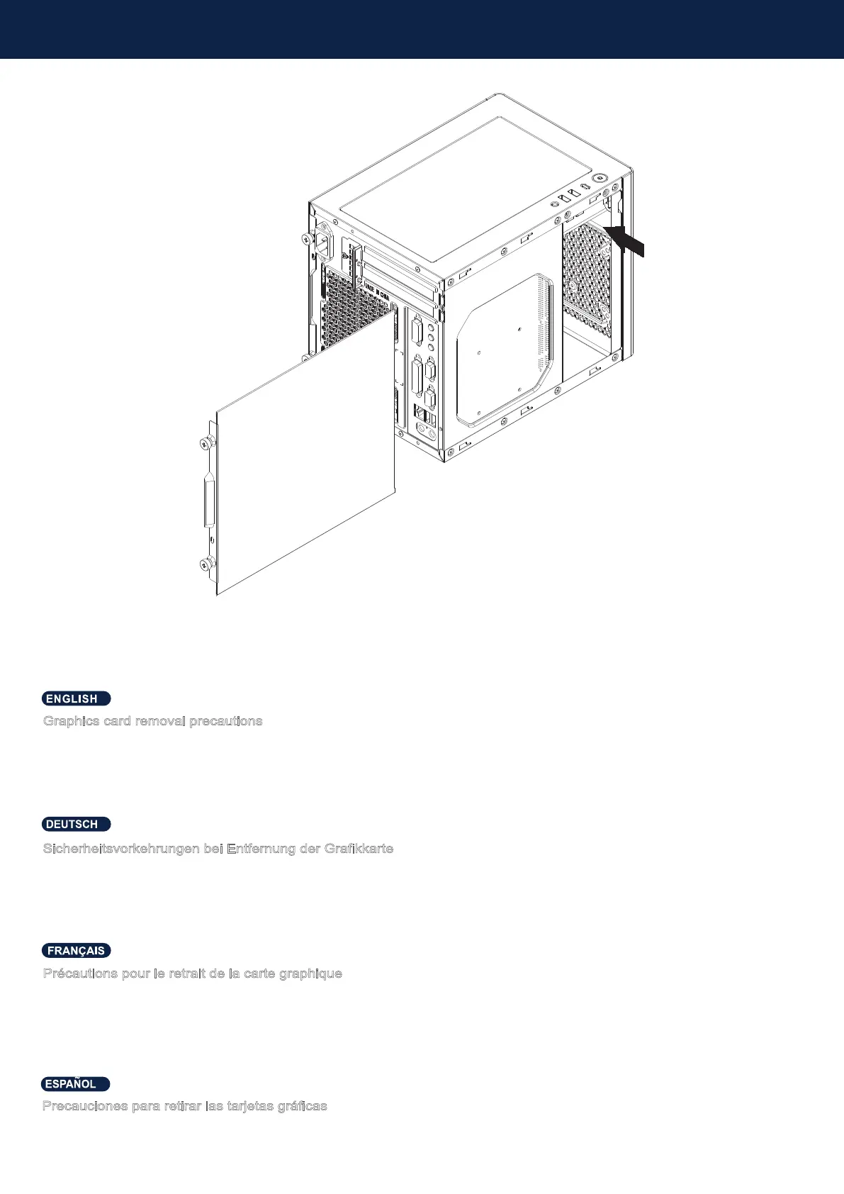 impossible d’accéder à l’avant de la carte mère. Pour retirer la carte graphique, commencez par retirer le panneau latéral
