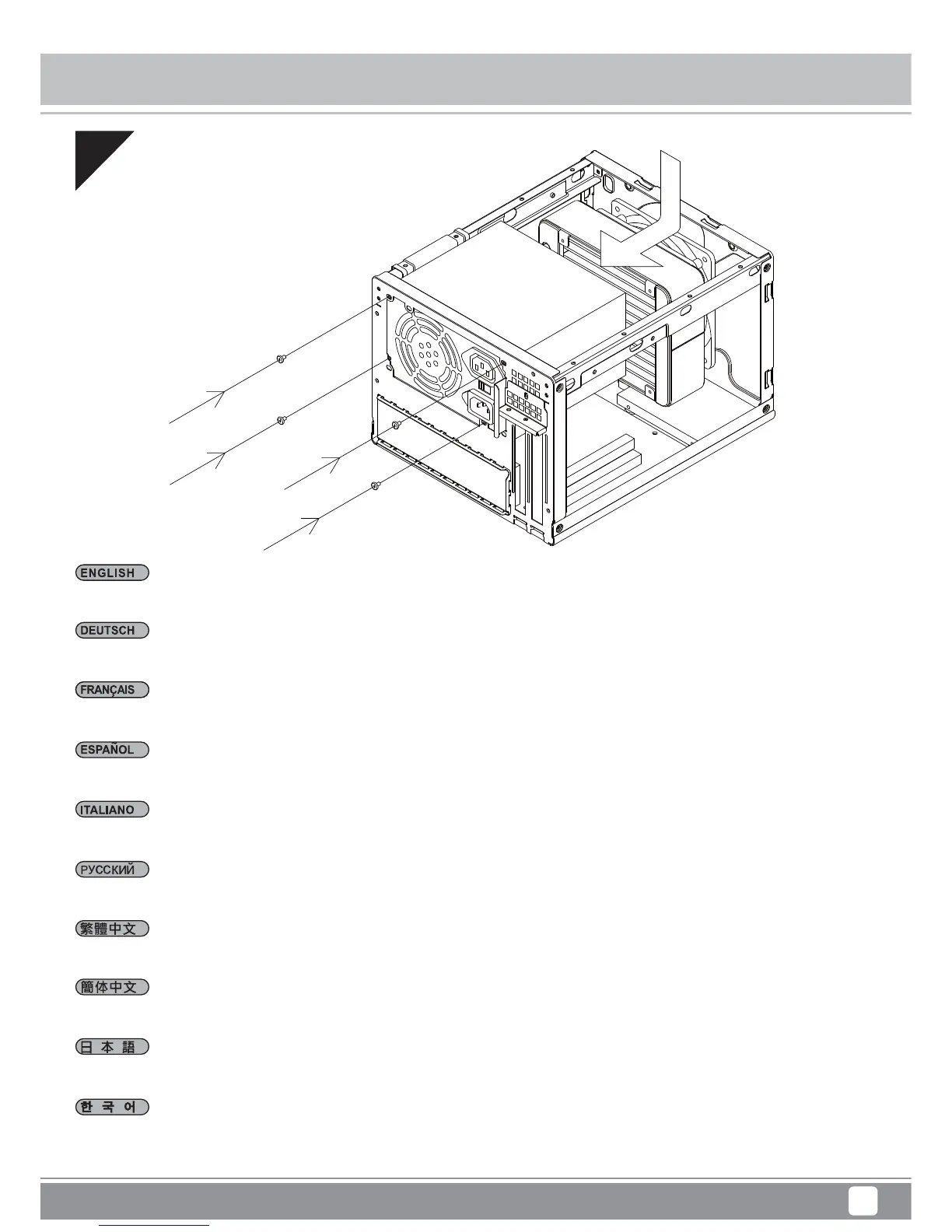 請先將電源供應器安裝至機殼。由於機殼內部安裝空間有限,顯示卡與電源供應器距離過近,不建議您先安裝顯示卡。