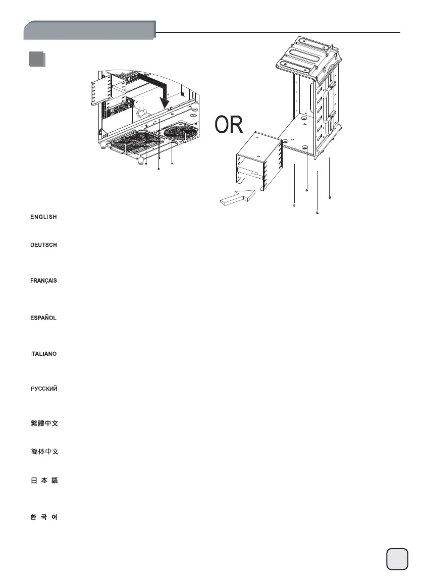 将2.5”硬盘架装回机箱(有两个锁固位置,请依需求选择);若电源深度太长,阻碍到原本2.5”硬盘架空间,可将硬盘架安装至