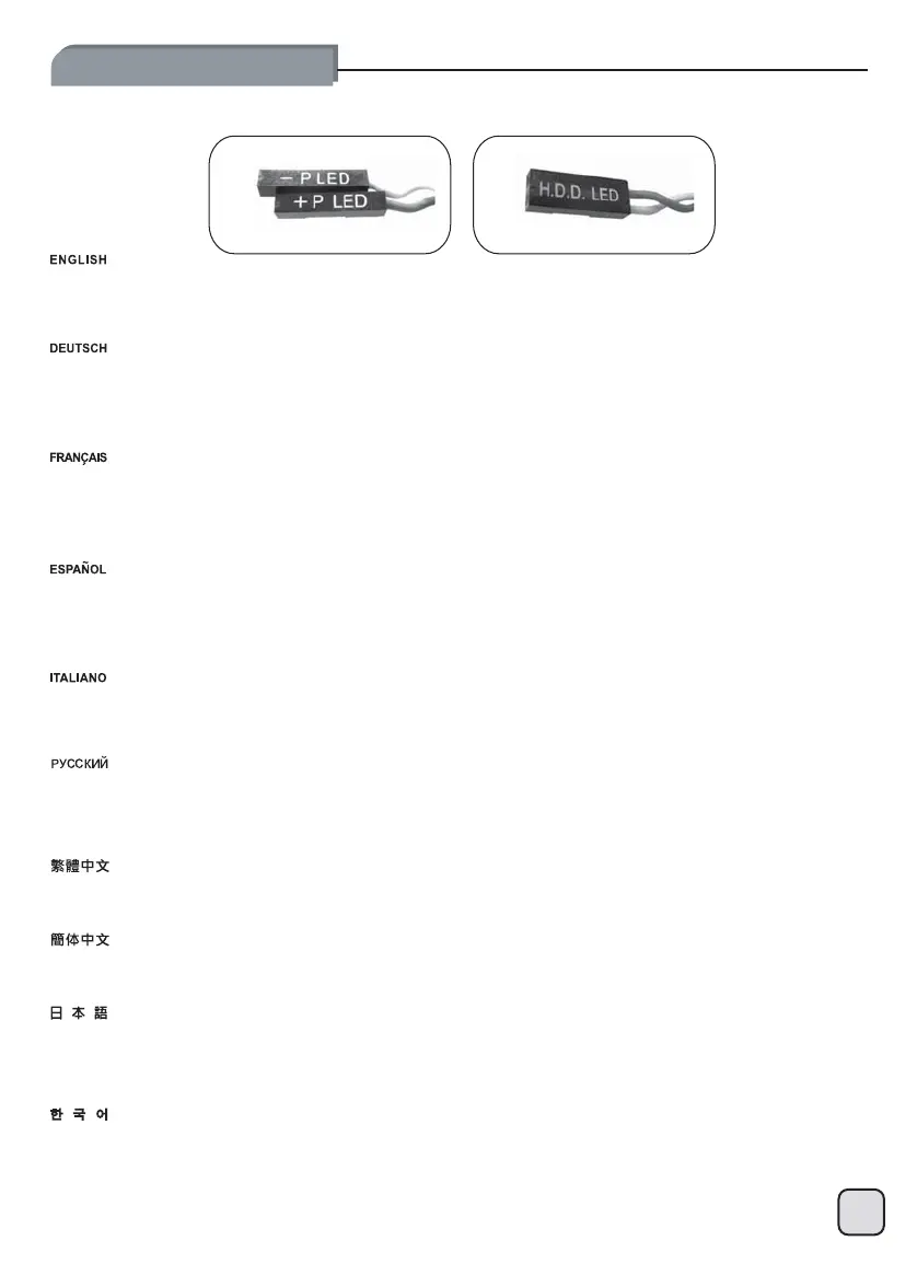 ださい。白色のリード線はマイナスで、色の着いたリード線がプラスです。電源LEDリード線は種々のマザーボードピン定義と互換性を持