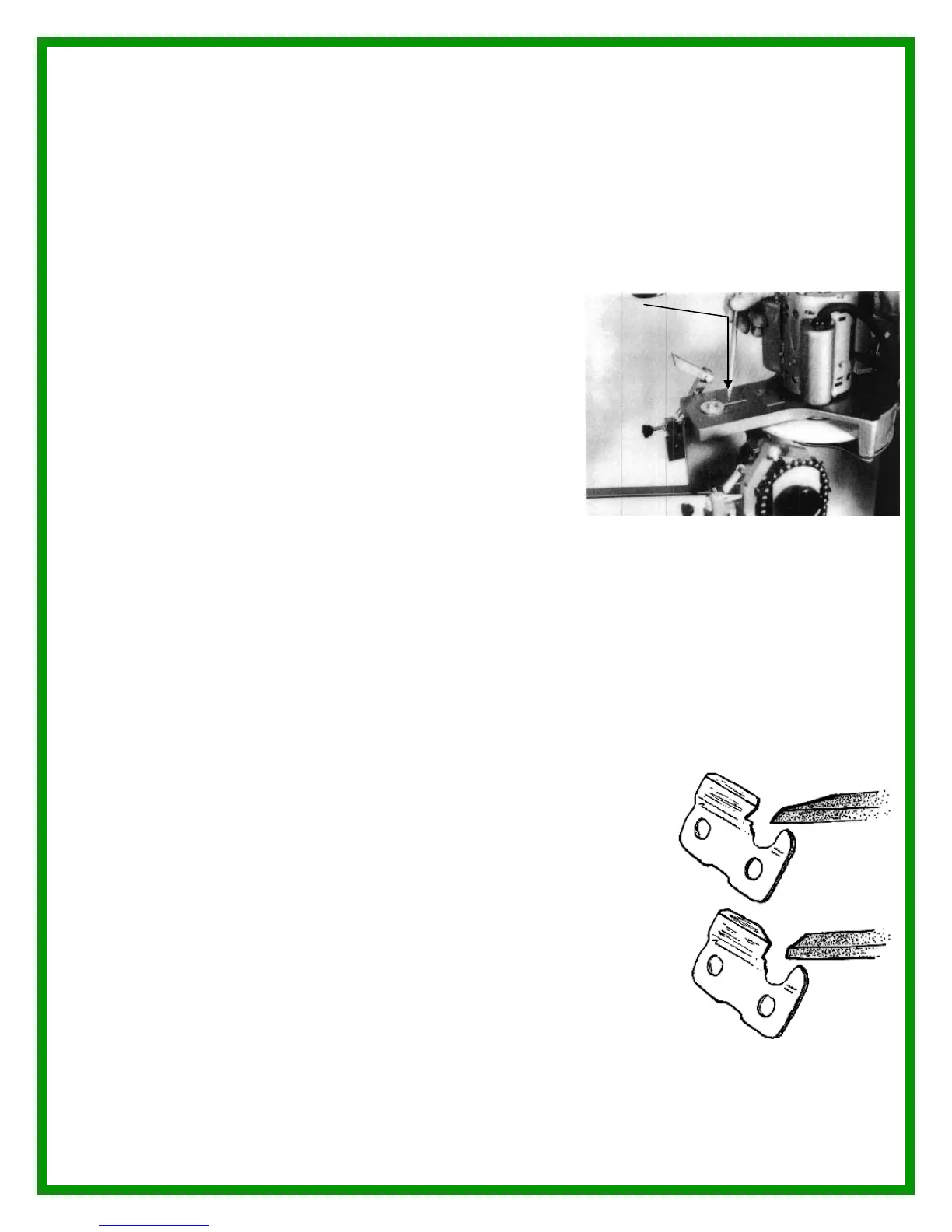 the diamond dresser and sharpen chain. This can be compensated for by sliding the chain