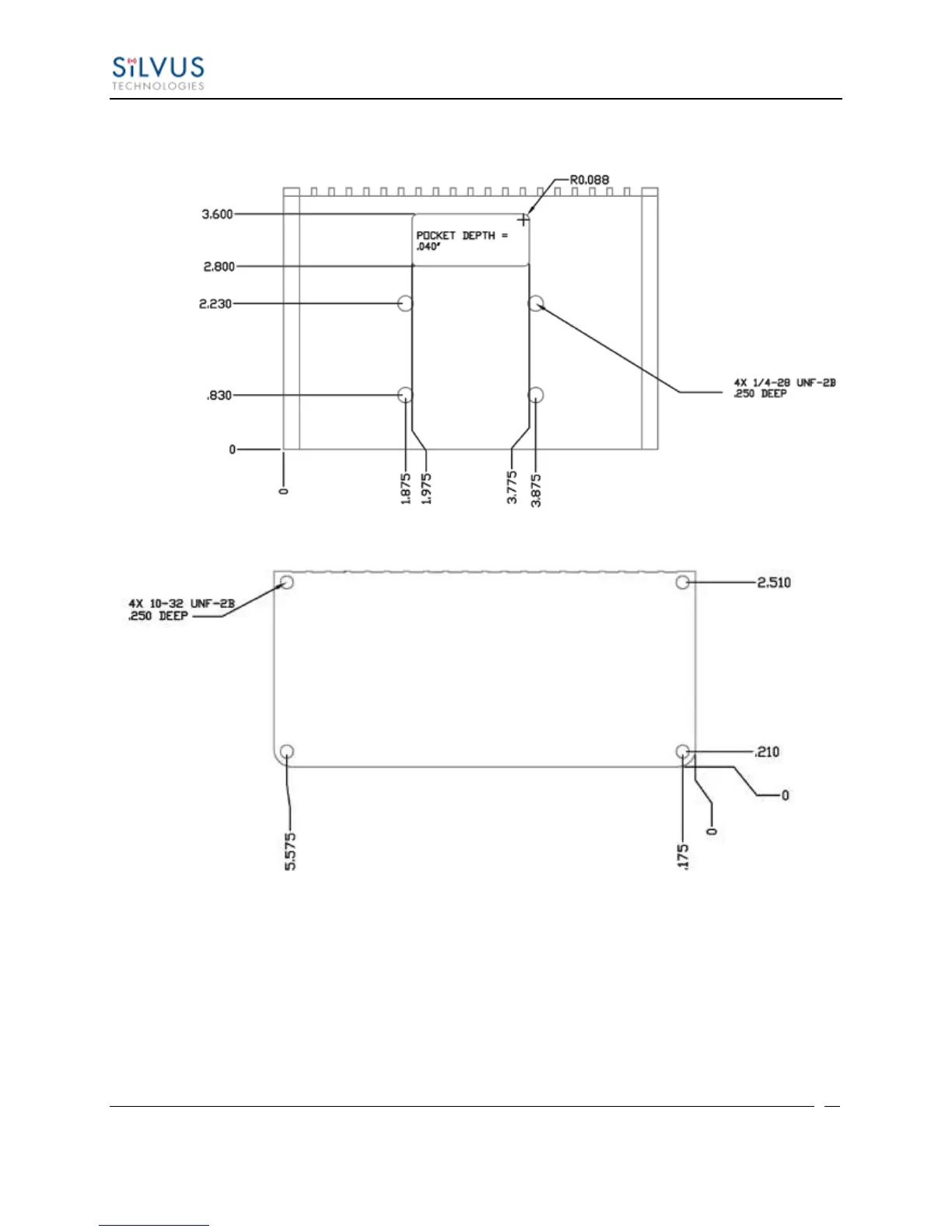 Silvus StreamCaster MIMO - Figure 10 SC3500;SC3800 Phase III Enclosure Mounting Pattern for Back of Enclosure (Top) and Bottom of Enclosure (Bottom); SC3500; SC3800 Phase III Enclosure Mounting Pattern