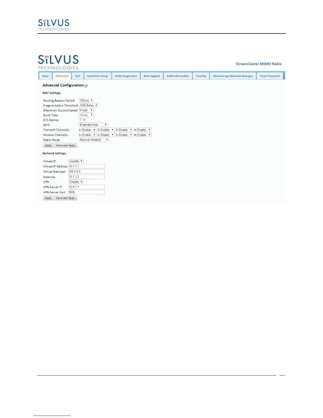 This page is used to set advanced configurations. A brief description of each parameter is given