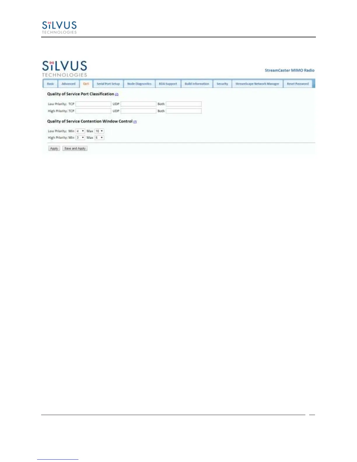 Figure 13 Quality of Service (QoS) Configuration Page