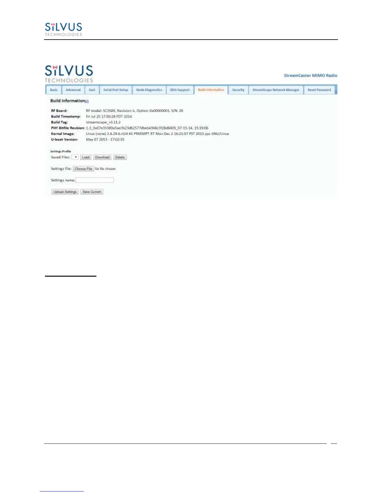 On the Build Information page a user can see information about the hardware and firmware