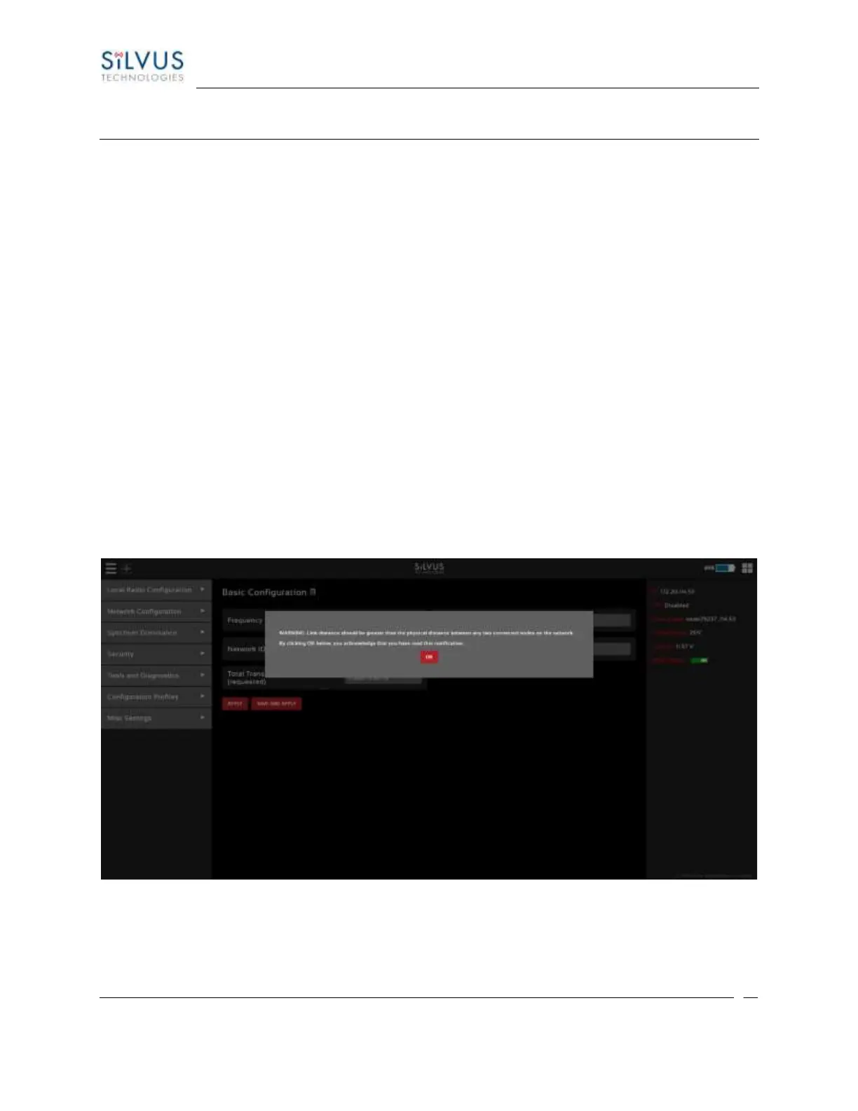 the link distance warning, then be directed to the Local Radio Configuration page. (See Figure 24 Initial