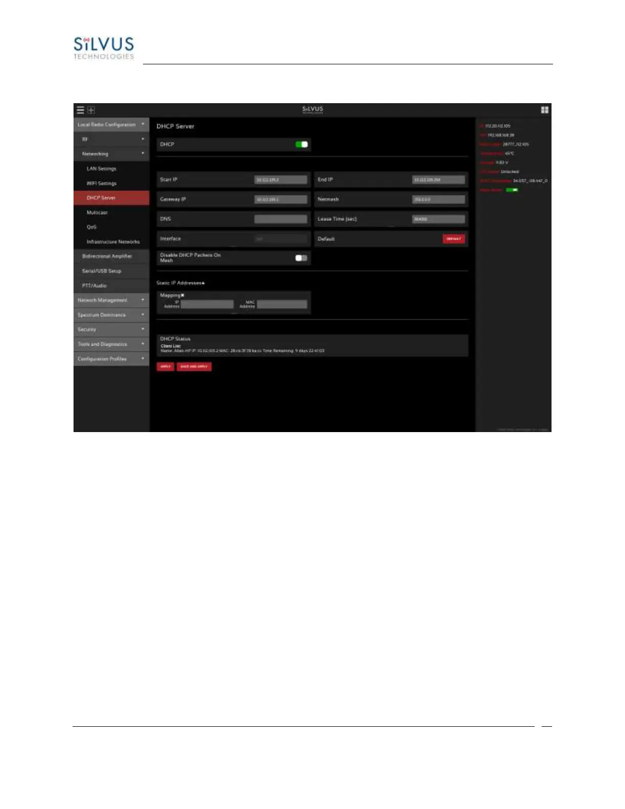 • Lease Time: Configures DHCP lease in seconds (how long an IP is valid for).