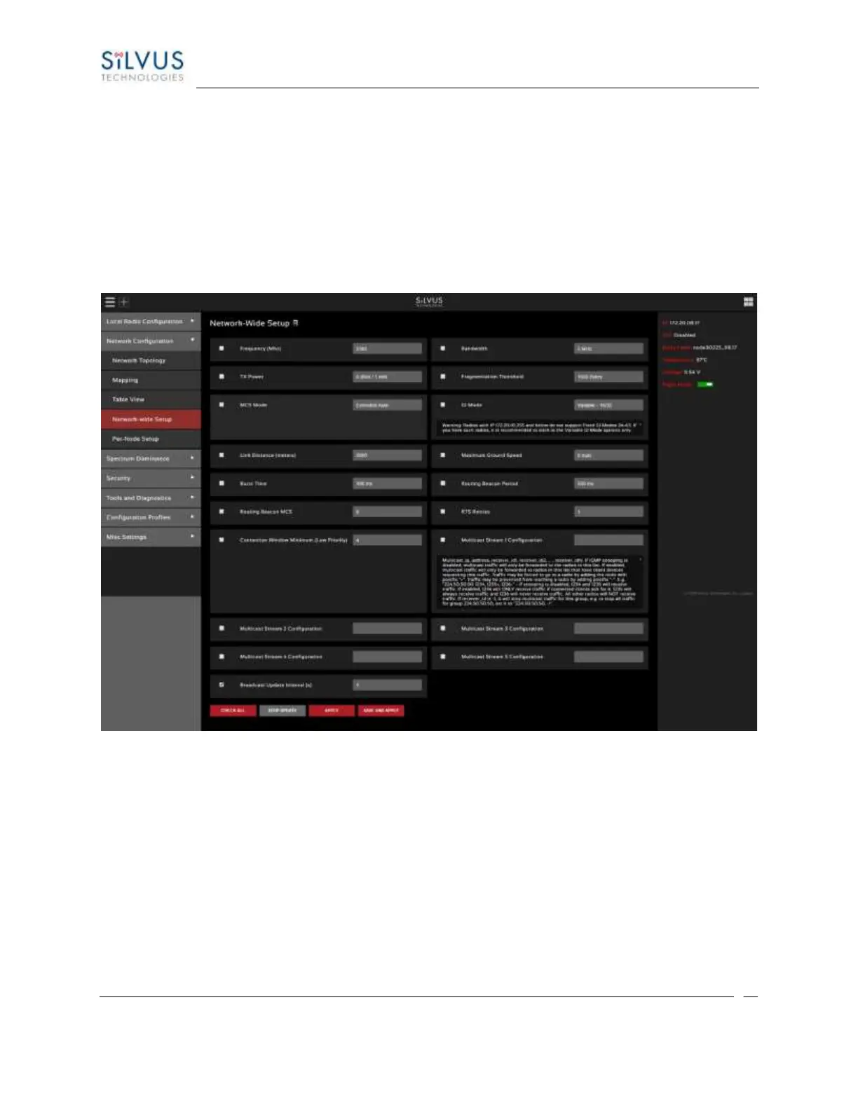 Using the network-wide setup users can configure key parameters of every node in the network with just
