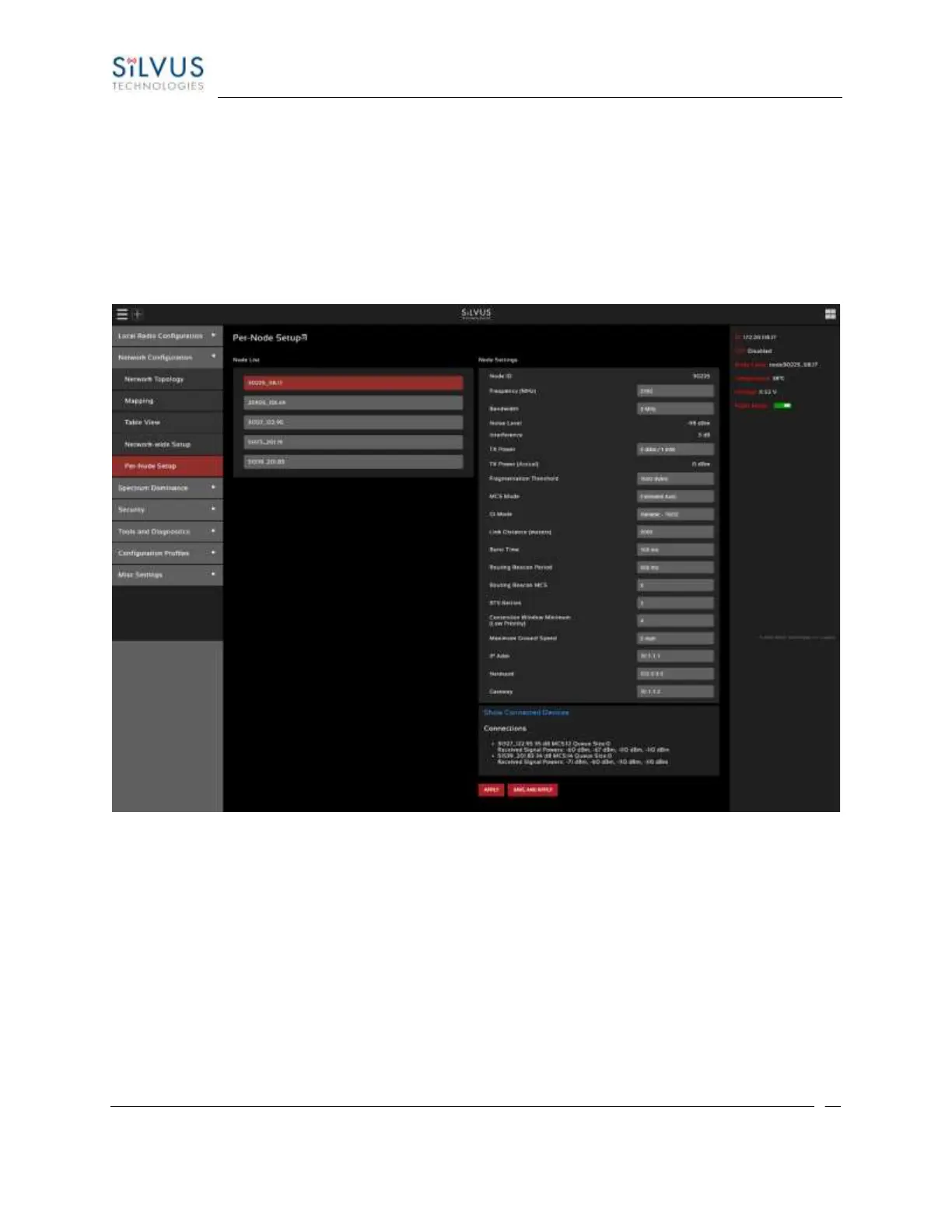 shown in Figure 59 Per-Node Setup, users will see a list of all nodes available within the network. The
