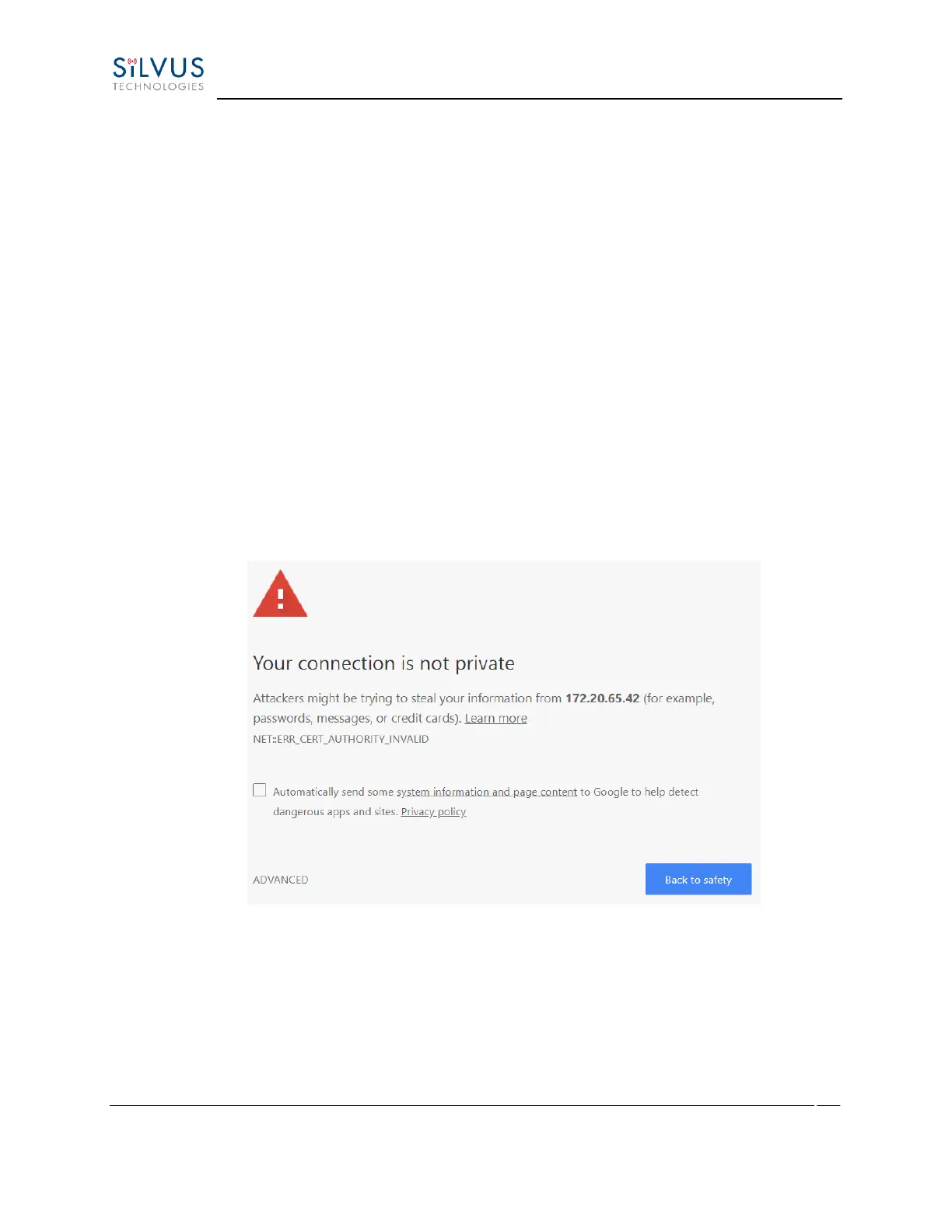 Silvus StreamCaster SC4400 - Figure 44 (Chrome Browser Warning)