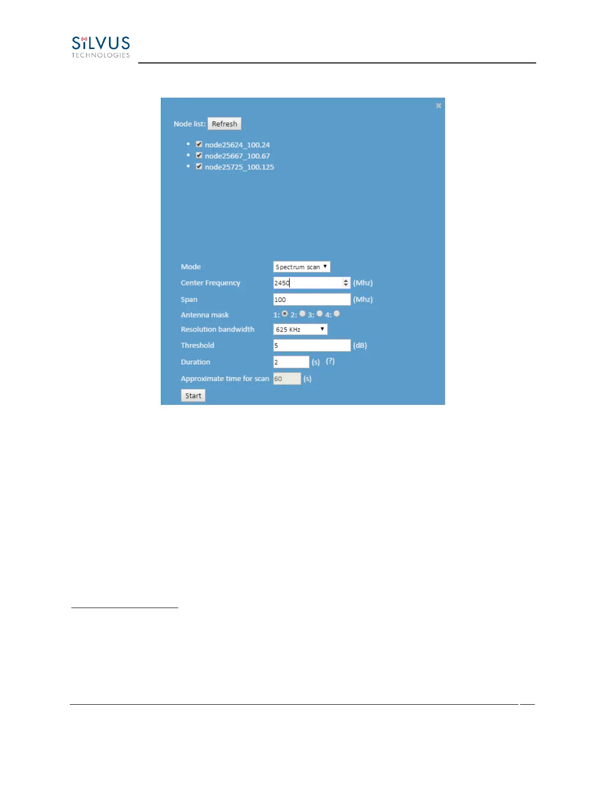 Figure 47 Spectrum Scan Settings The node list shows the list of nodes currently connected into the
