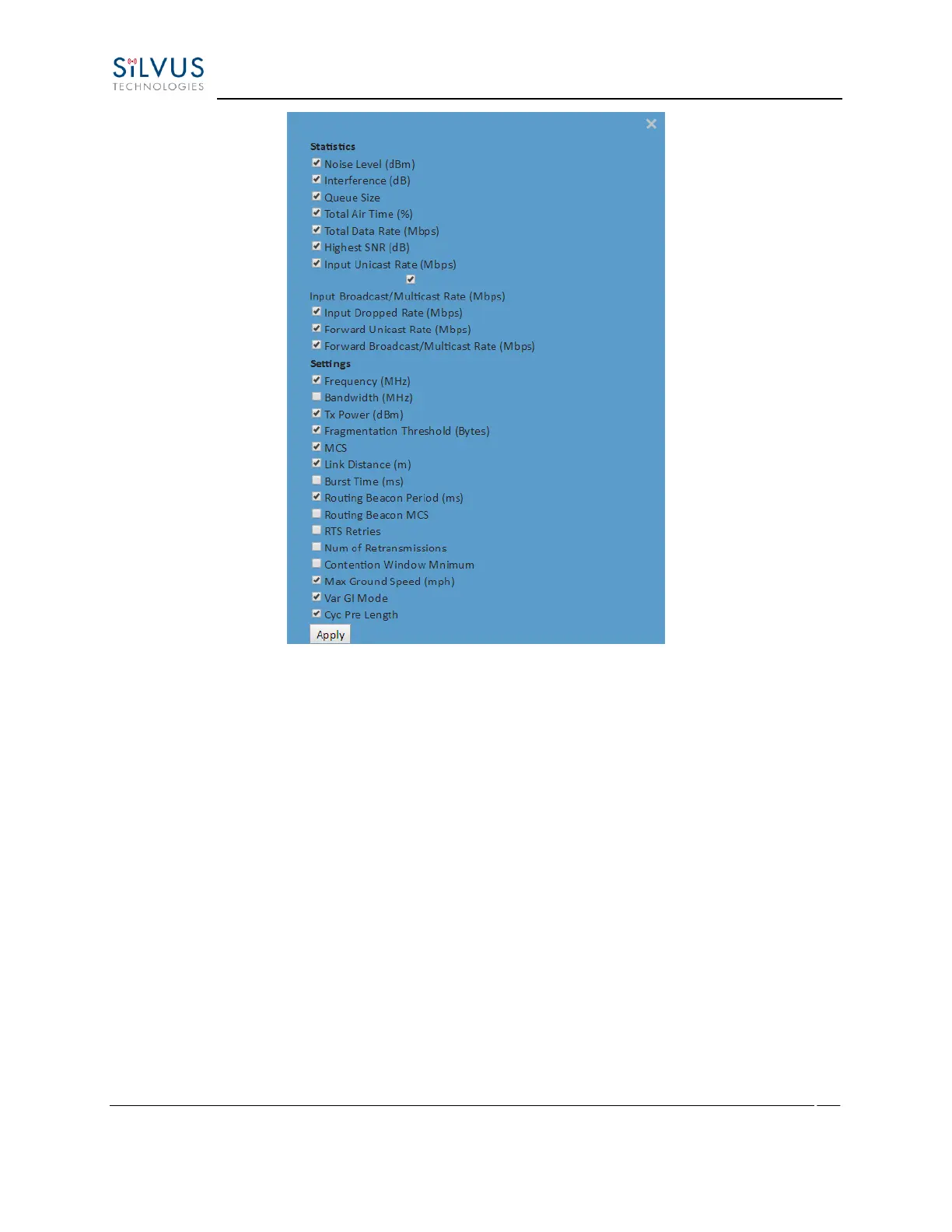Silvus StreamCaster SC4400 - Figure 63 Table View (Settings)