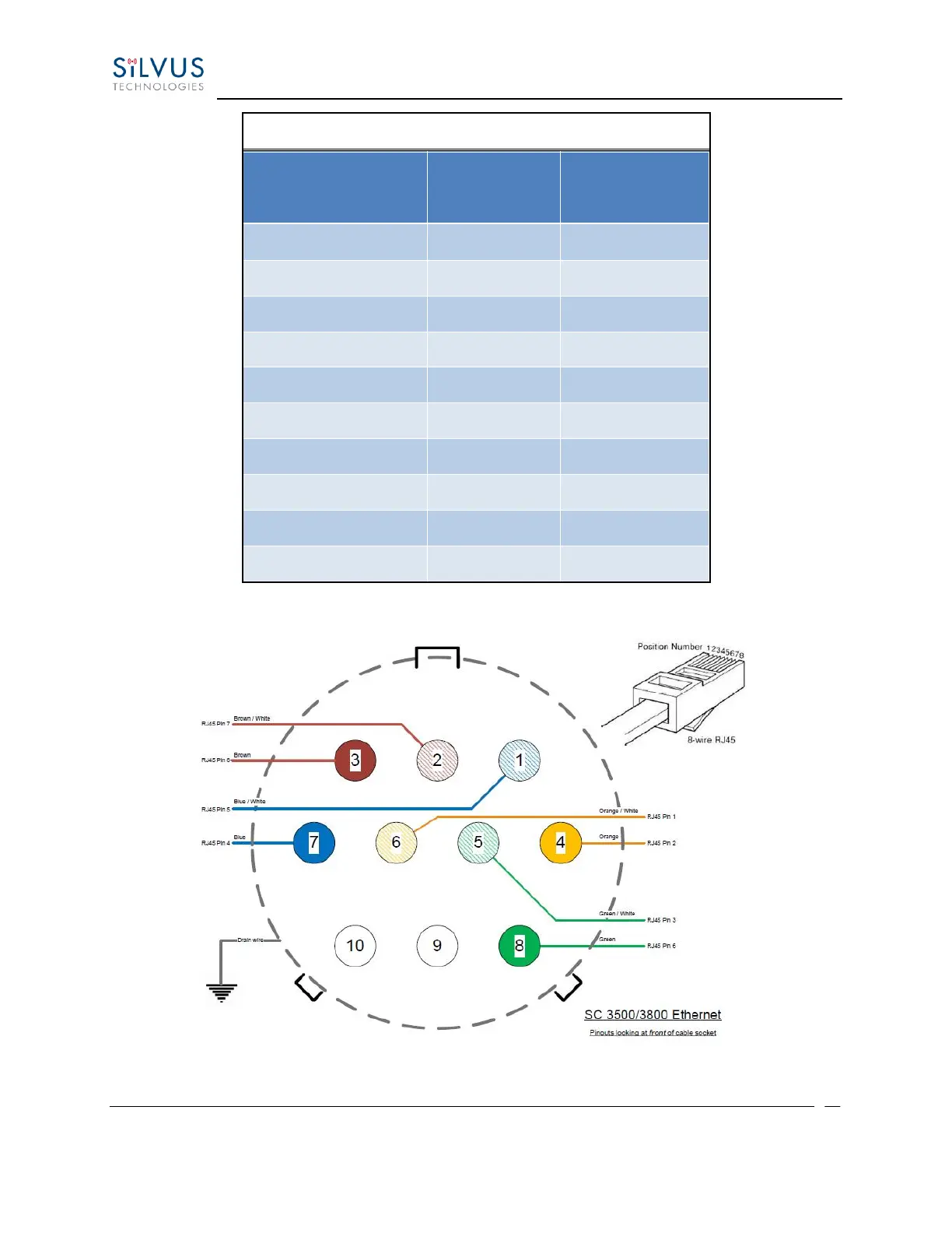 Silvus StreamCaster SC4400 - Figure 19 SC3500;SC3800 Ethernet Pinout Diagram (Cable Side); Table 24 SC3500;SC3800 Ethernet Connector Pinout