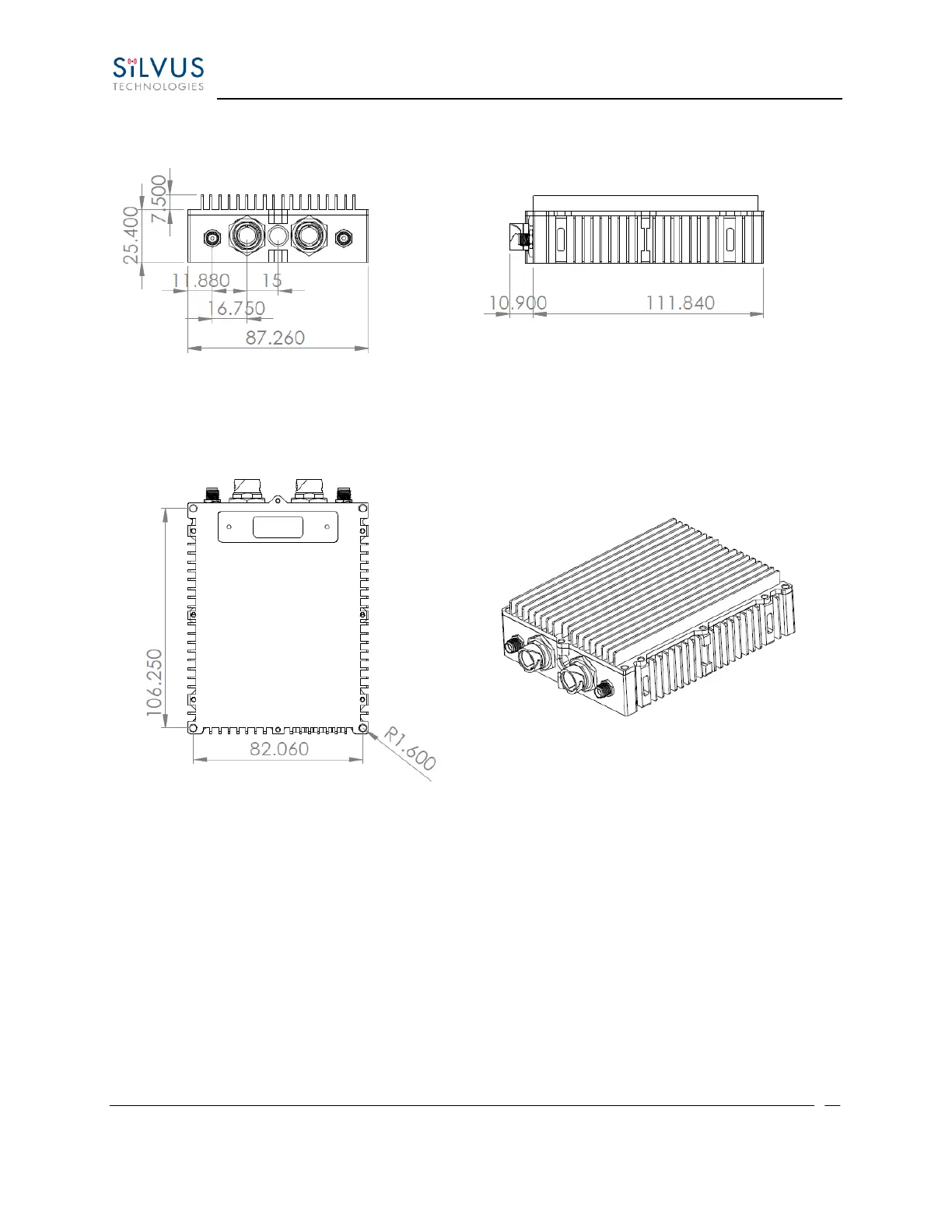 Silvus StreamCaster SC4400 - SC3822 Enclosure Mechanical Drawing; Figure 25 SC3822 Mechanical Drawing (Top) and Mounting Pattern (Bottom)