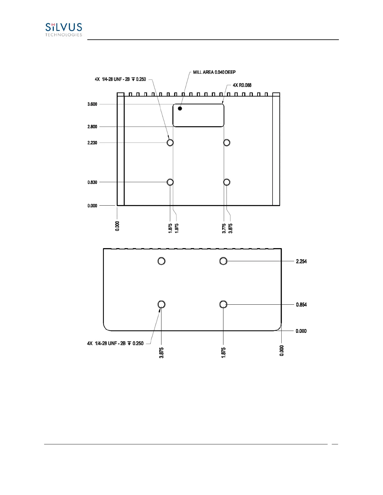 Silvus StreamCaster SC4400 - SC3500;SC3800 Phase II Enclosure Mounting Pattern; Figure 26 SC3500;SC3800 Phase II Enclosure Mounting Pattern for Back of Enclosure (Top) and Bottom