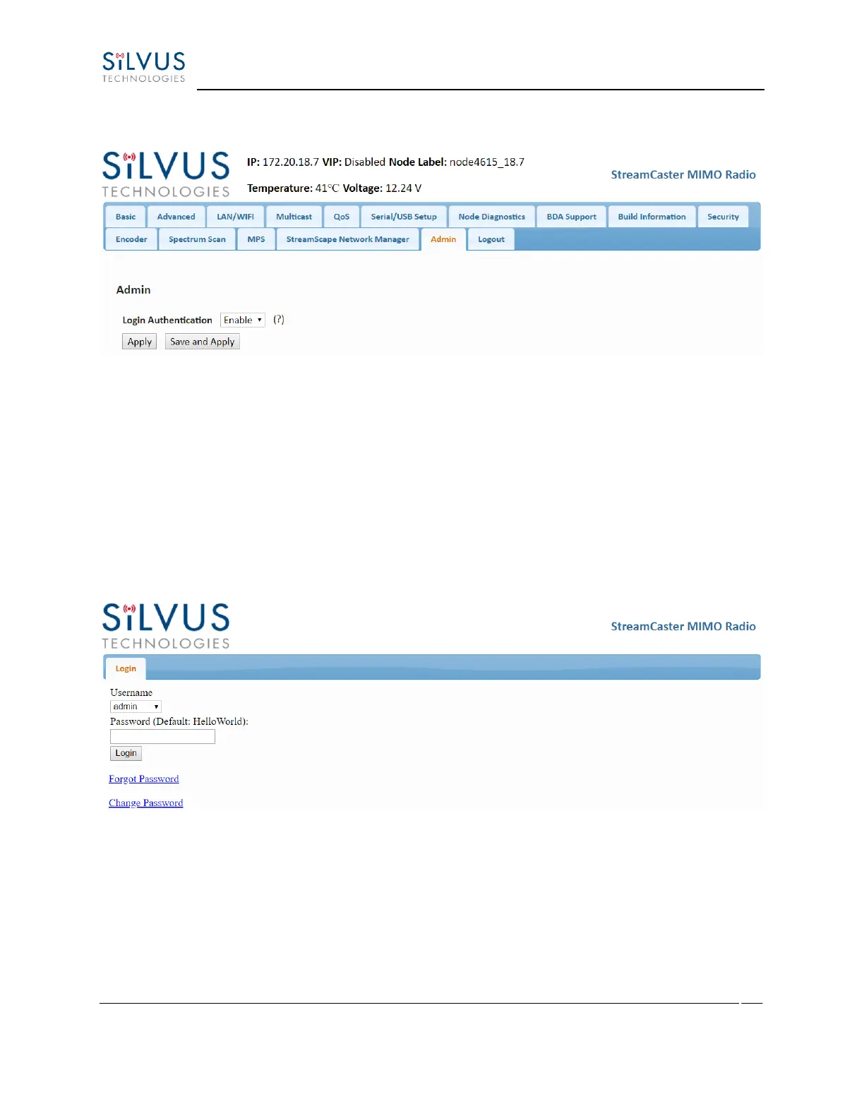 Login Authentication to Enable and provide a password. Once Login Authentication is enabled,
