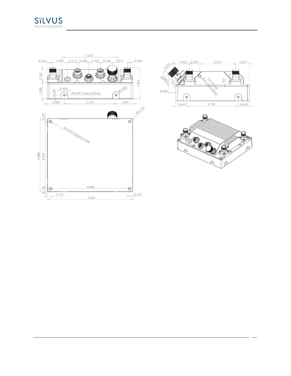 Silvus StreamCaster SC4400E - SC4400 E Enclosure Mechanical Drawing; Figure 21 SC4400 E Mechanical Drawing (Top) and Mounting Pattern (Bottom)