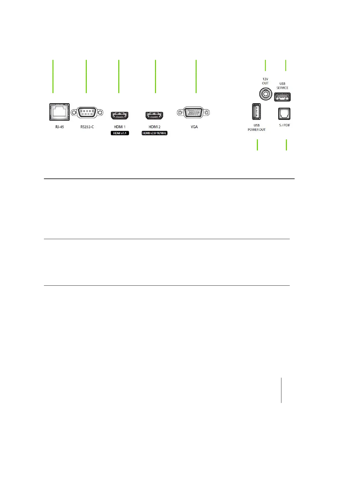 RS-232 RS232 (female D-Sub 9-pin) port for serial commands and