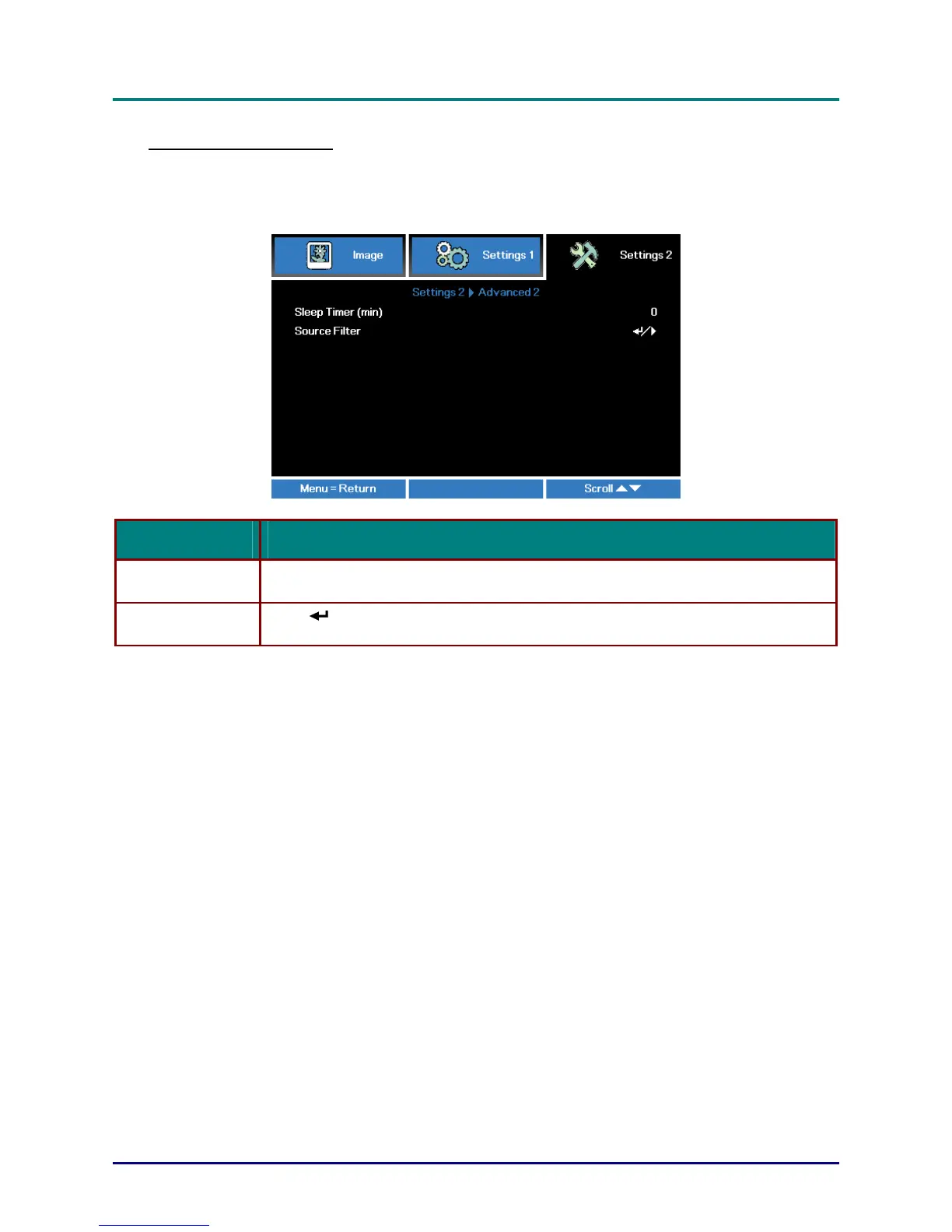 (Enter) / ► to enter the Source Filter menu. See page 35 for more