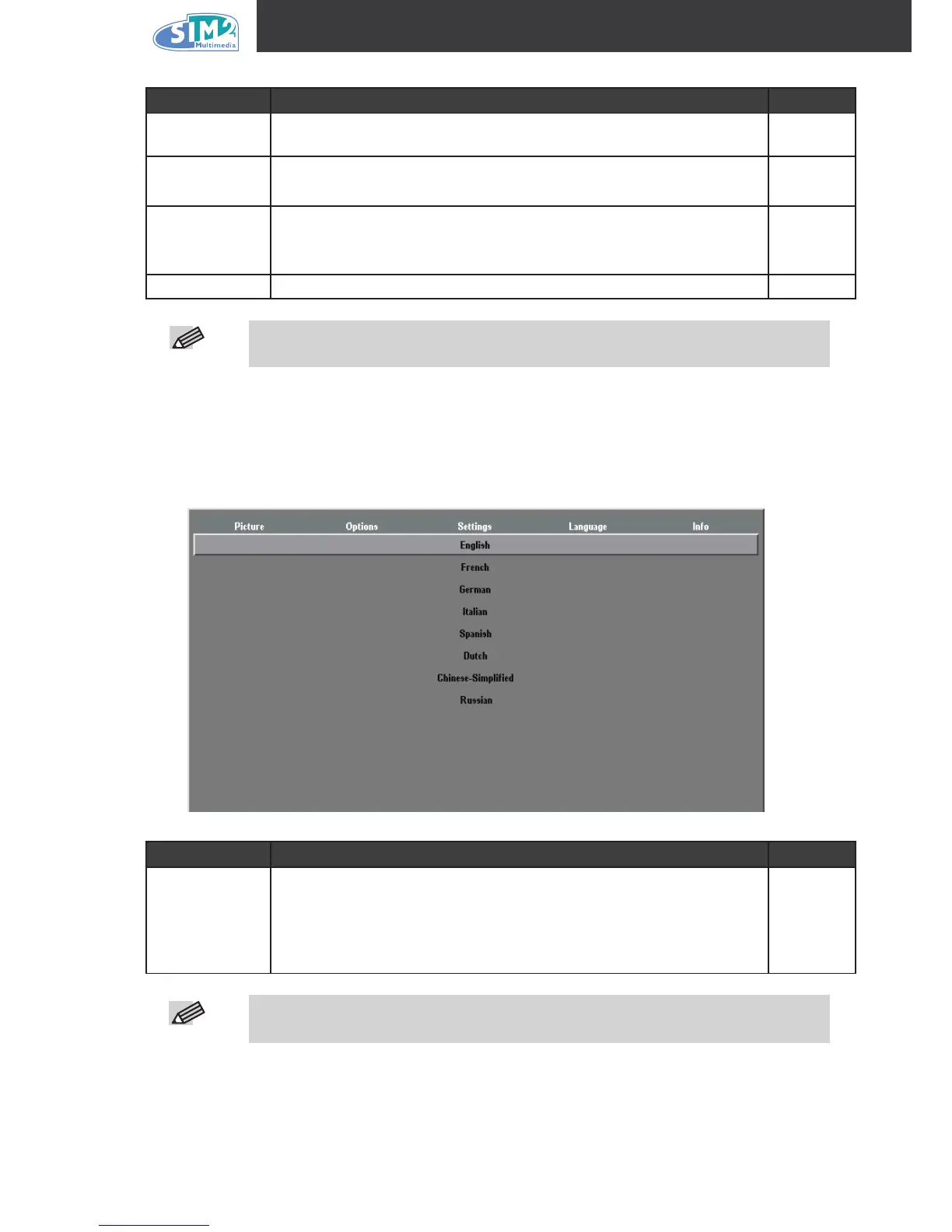 Language menu. Press the cursor ▲▼ button to move up and down in the Language menu.