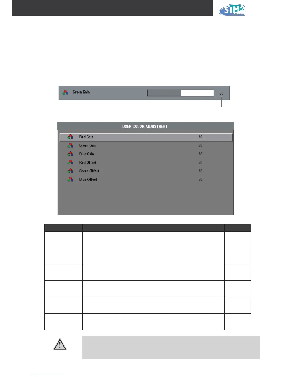 Press the cursor ▲▼ button to move up and down to User Color menu. Press the cursor ▲▼