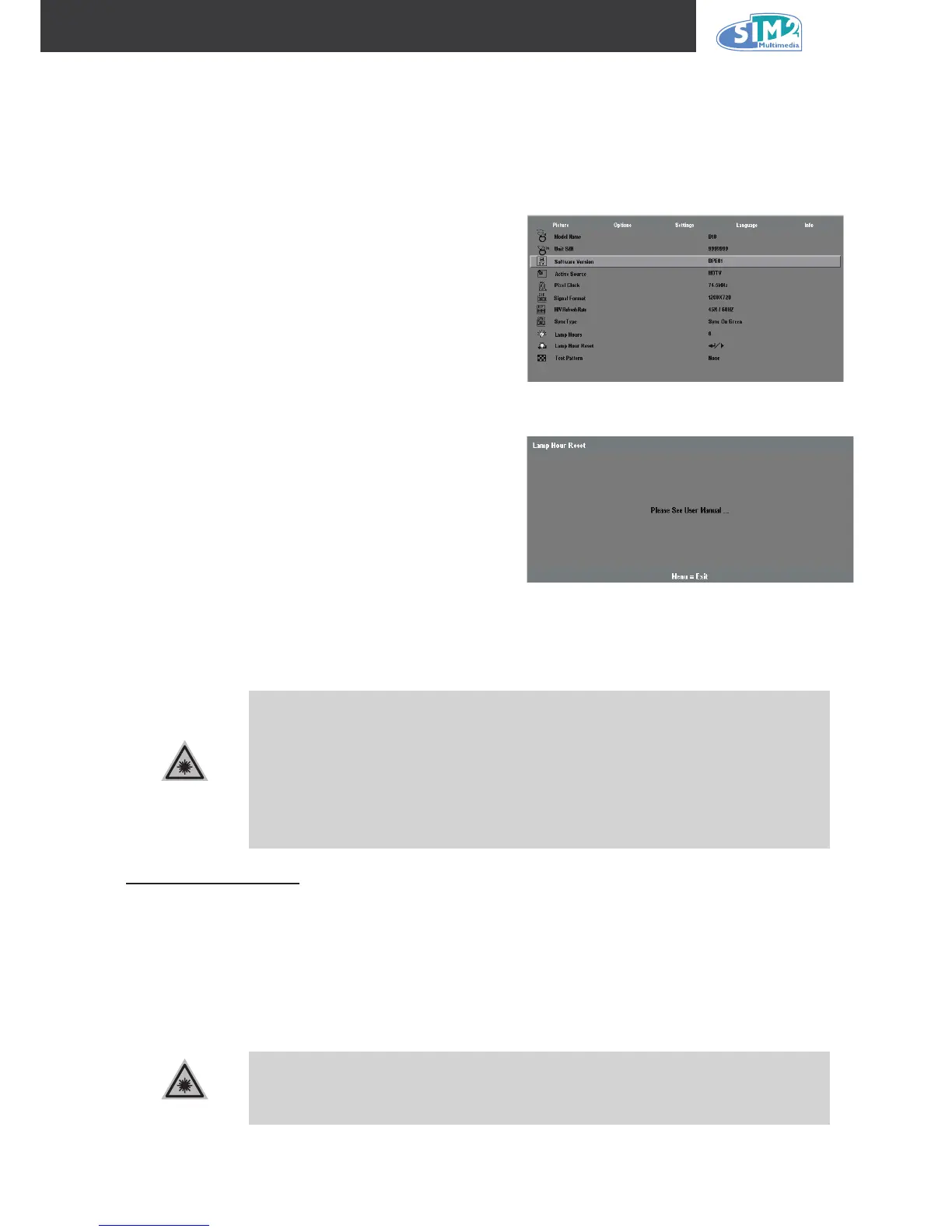 down to Lamp Hour Reset.